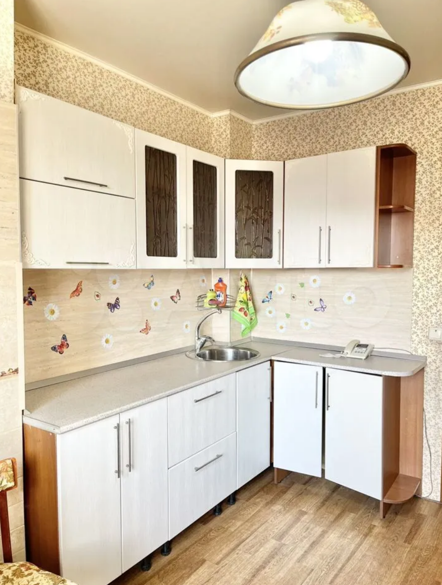 Отличное жилое состояние, не требует ремонта. В квартире остаётся кухонный гарнитур, остальная мебель - по согласованию, Установлены счётчики на воду, газ, электроэнергию. Лоджия с отделкой и выведенным освещением, остекление - стеклопакеты. Санузел совмещённый, отделка - плитка. Большой тамбур на 2 квартиры, прекрасные соседи. Ком.услуги примерно 3300-3500 руб в месяц.