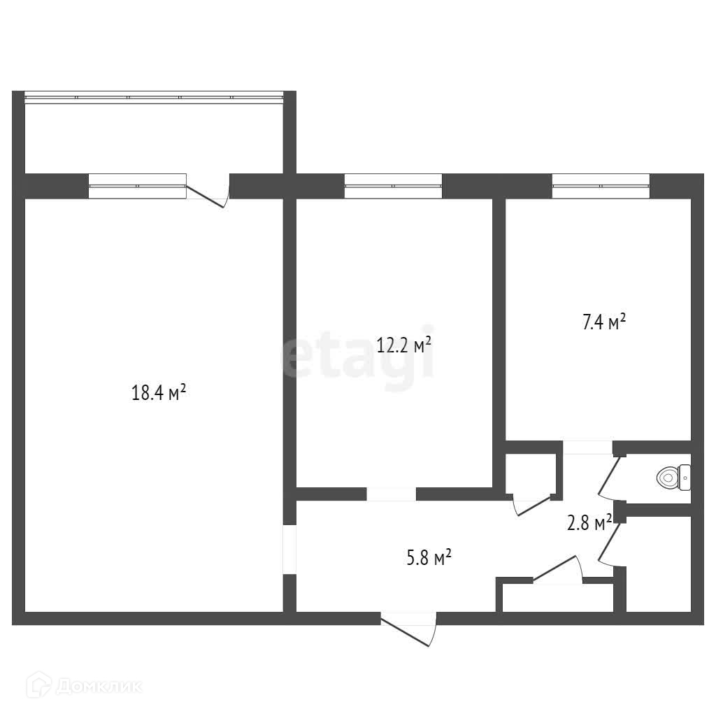 Общая площадь 52.7 м2
