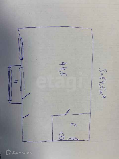 Общая площадь 54.5 м2