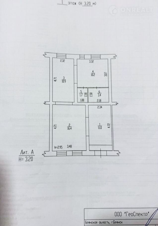 Общая площадь 53.6 м2