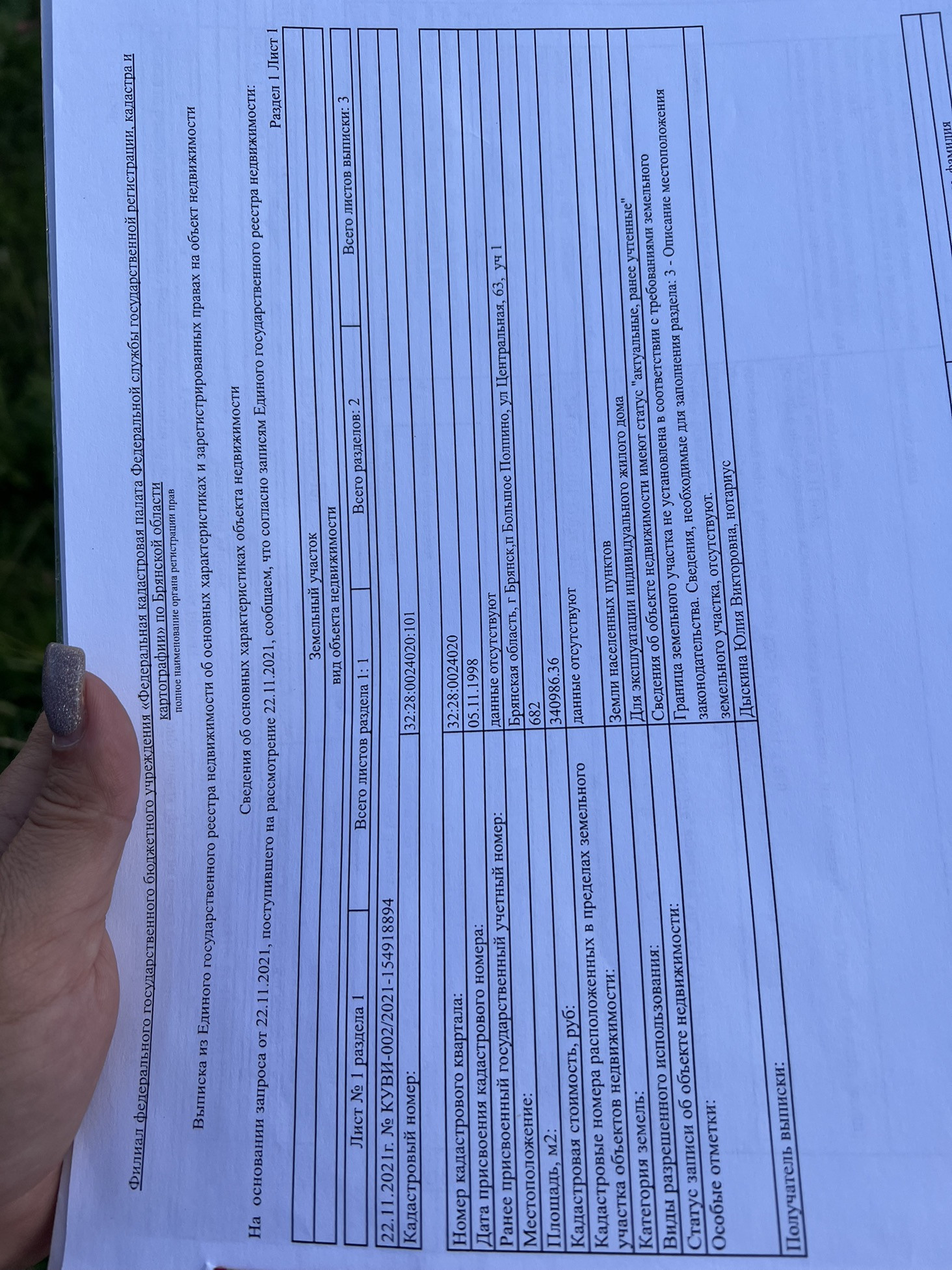 Кадастровый номер: 32:28:0024020:101