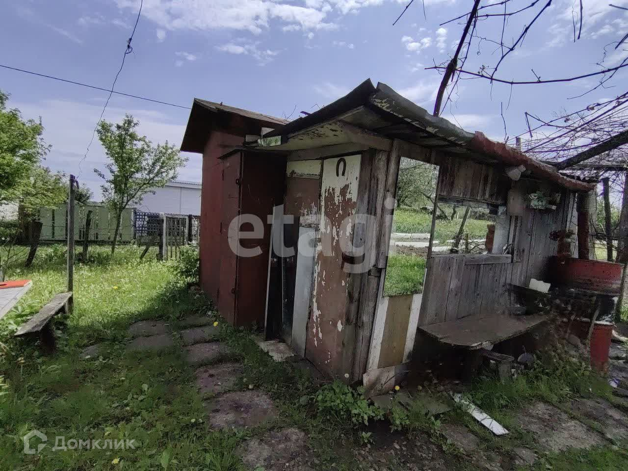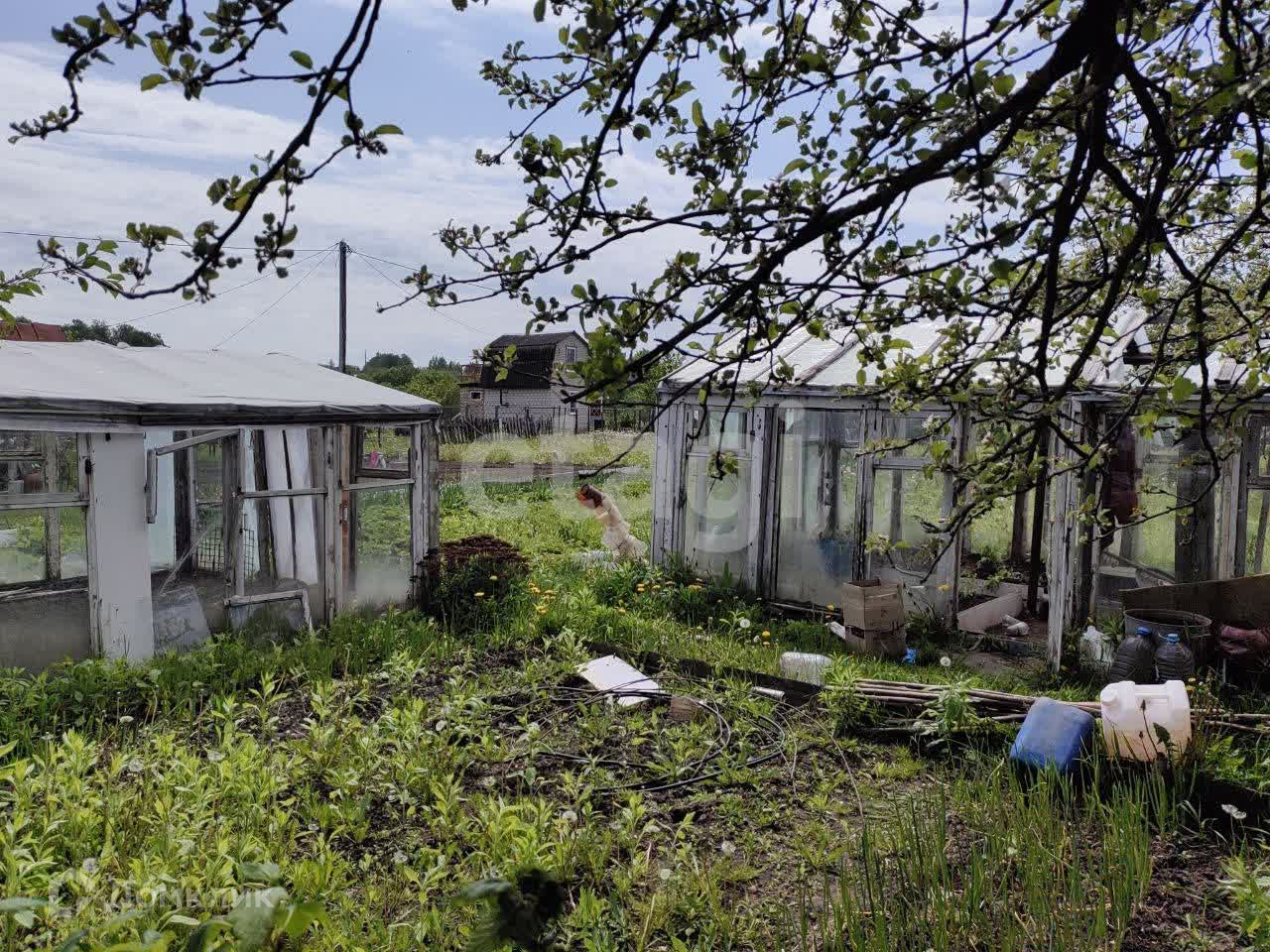 Участок ровный, правильной формы, частично обработан. На участке две теплицы, сарай, железный контейнер в качестве домика. Посажены плодовые деревья и кустарники (вишни, яблони). До остановки общественного транспорта 15 минут пешком .