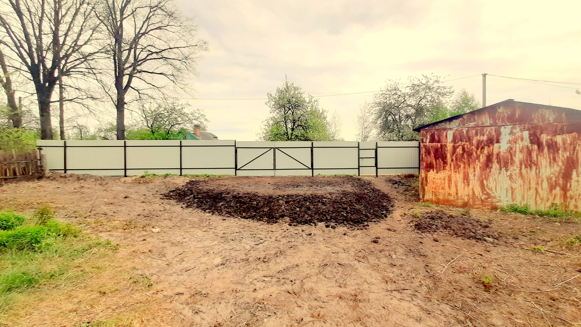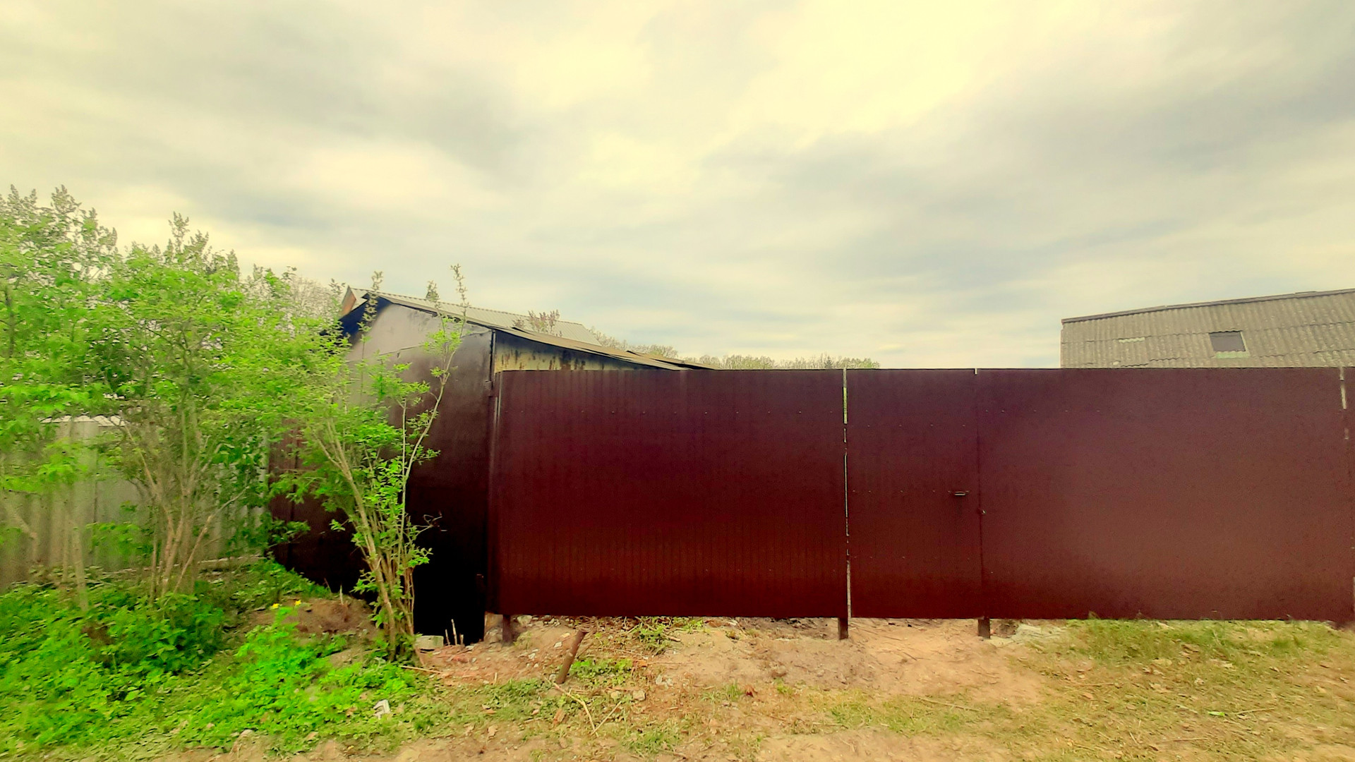 На участке мет.гараж и дачный дом 44 кв.м. Все коммуникации вдоль забора.