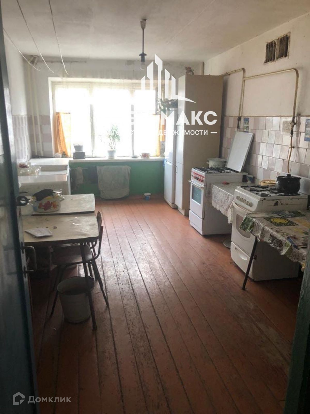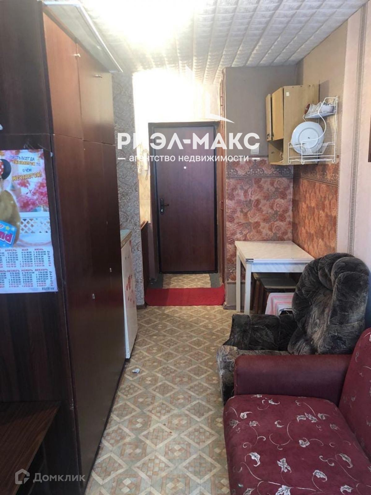 Комната 12 кв.м. Есть все необходимое: телевизор, диван, кресло, стол, холодильник, шкаф, заведена вода (есть раковина).