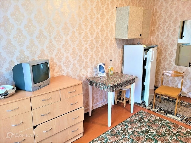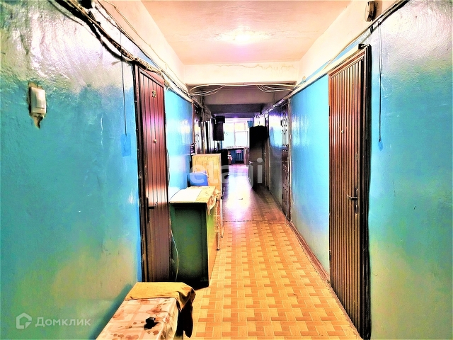 В комнате есть все необходимое для комфортного проживания. Диван, холодильник, обеденный стол, вместительная кладовая для хранения вещей. Кухня общая, на этаже. Имеется сан узел и душевая. Подъезд чистый. Соседи доброжелательные.