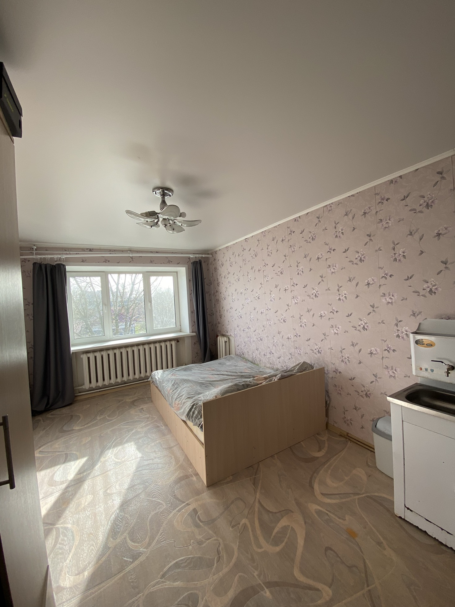 Светлая, уютная комната в общежитии на Красных партизан 30 коридорного типа, комната угловая, но теплая, через стену соседи не живут, что избавляет от лишнего шума. Туалет и умывальники напротив комнаты - не надо далеко ходить. Для комфортного жилья есть холодильник, мультиварка ,чайник, микроволновка, личная стиральная машина. Удобная двуспальная кровать, шкаф, прихожая и кухонный гарнитур.