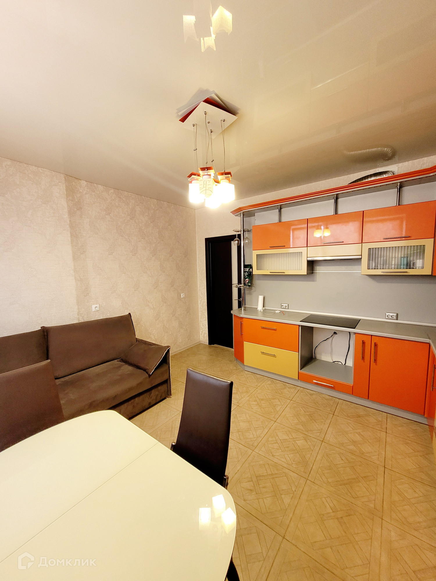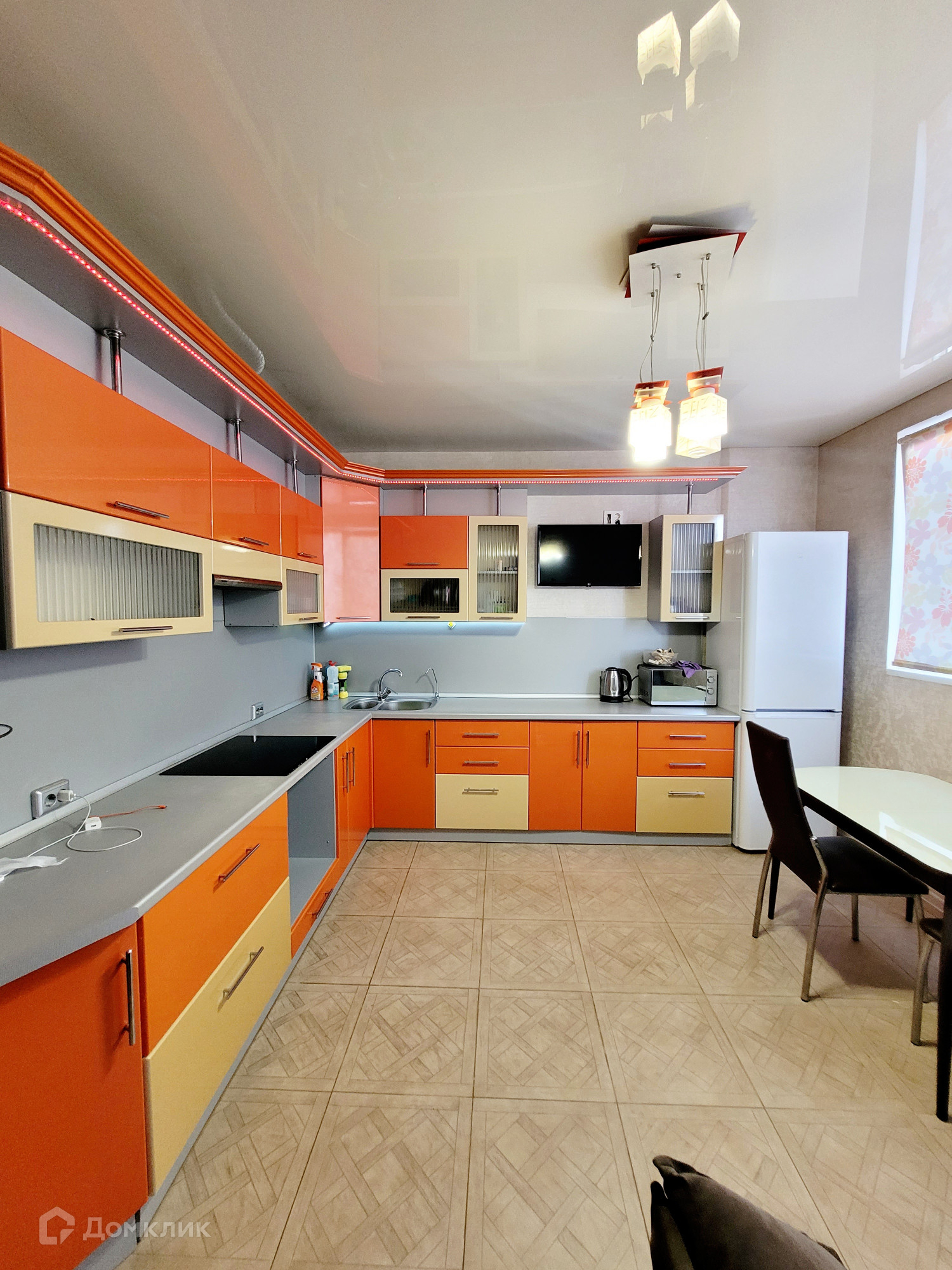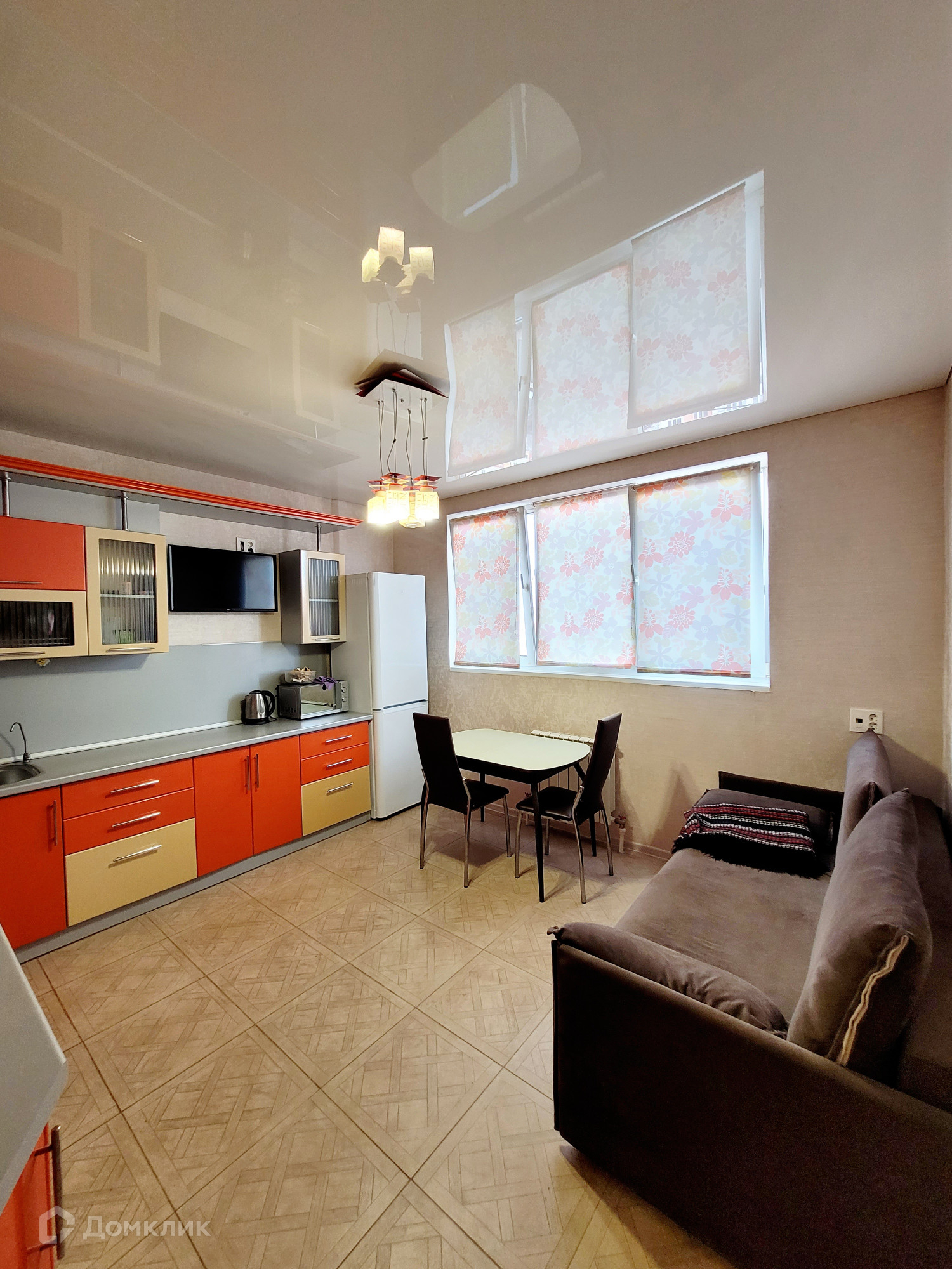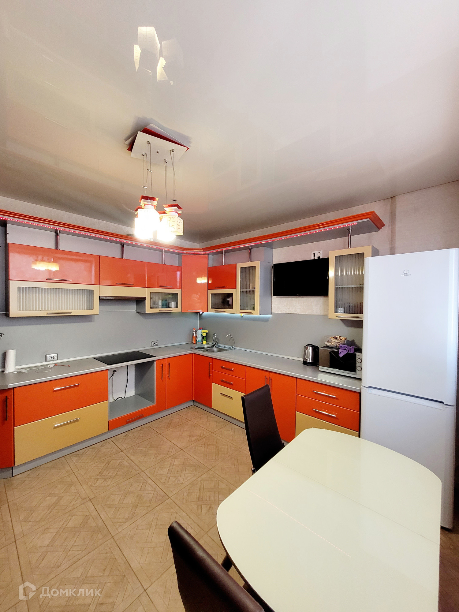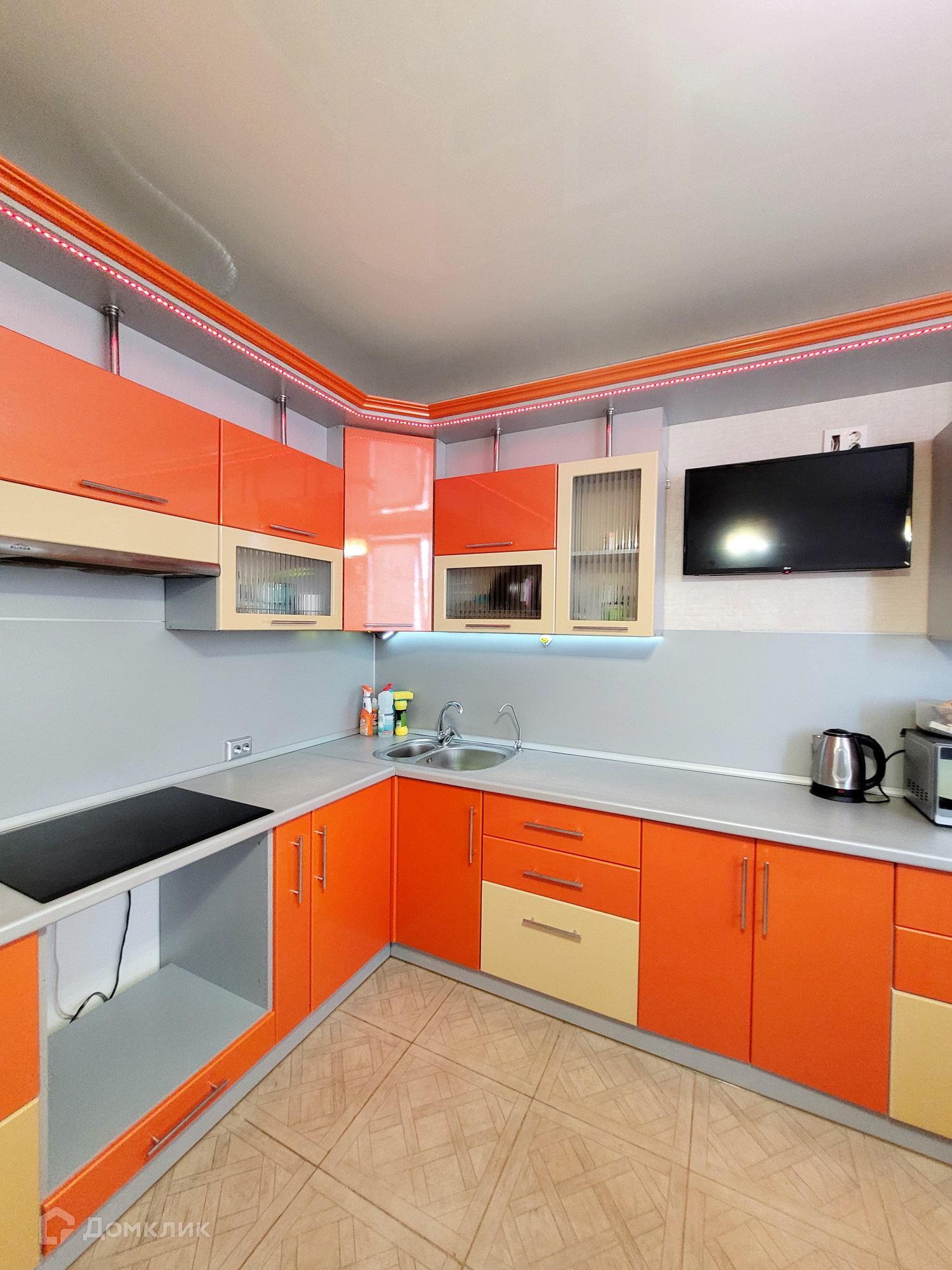 Мебель и техника: Холодильник, плита индукционная, стиральная машинка-автомат, два телевизора (кухня и комната), микроволновая печь, электрический чайник, два дивана раскладных на кухни и в комнате, кондиционер, вместительная сборная стенка с угловым компьютерным столом, кухонный гарнитур, кухонный стол и стулья.