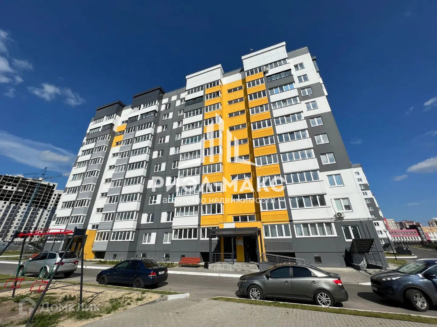 Благоустроенная детская площадка, много парковочных мест.