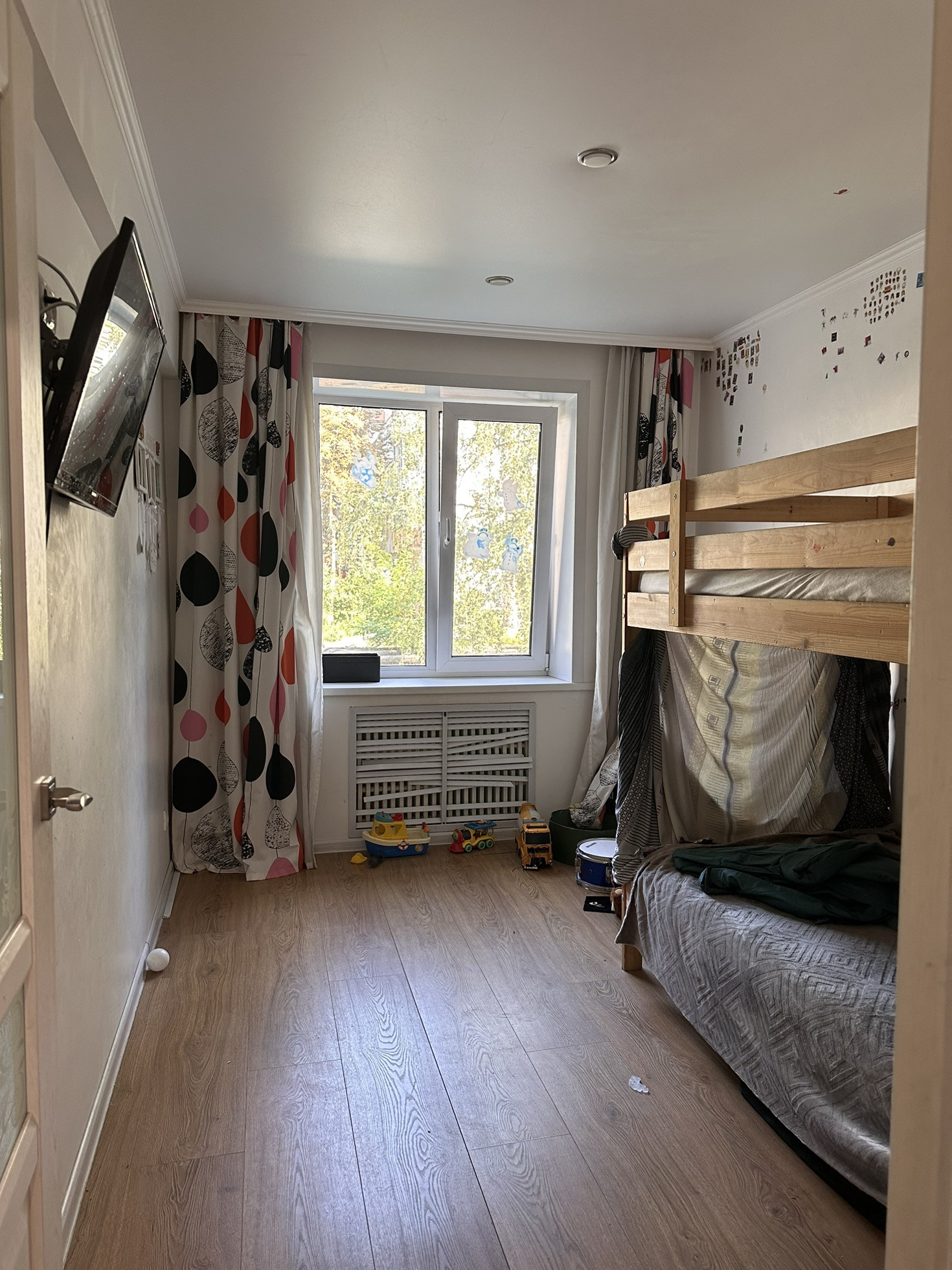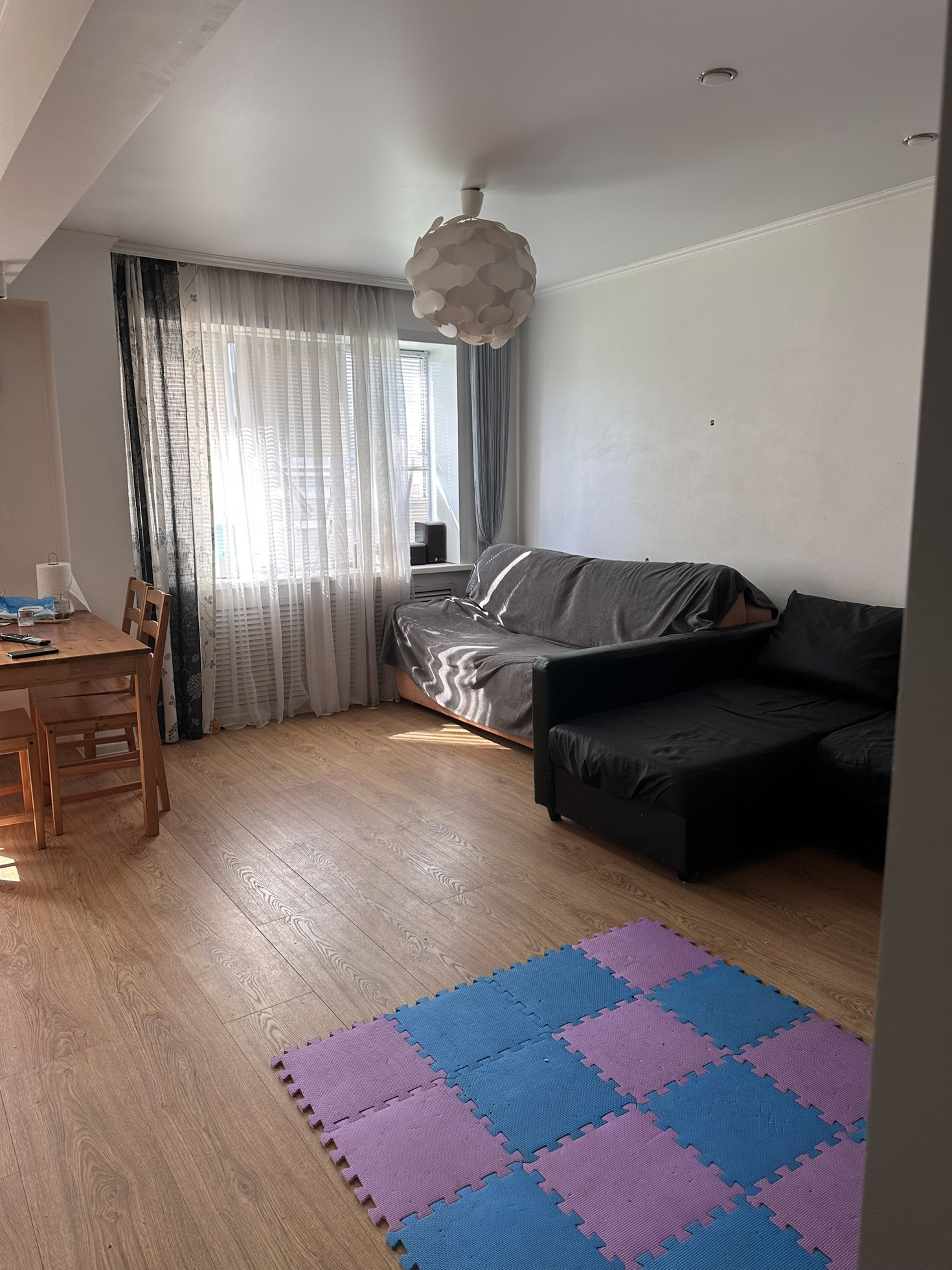 Хорошая квартира! Рядом всё есть, остановка, магазины, аптека, школа и детский сад! Кухня с залом как студия! Есть отдельная гардеробная! Кровать из спальни и детской заберём!