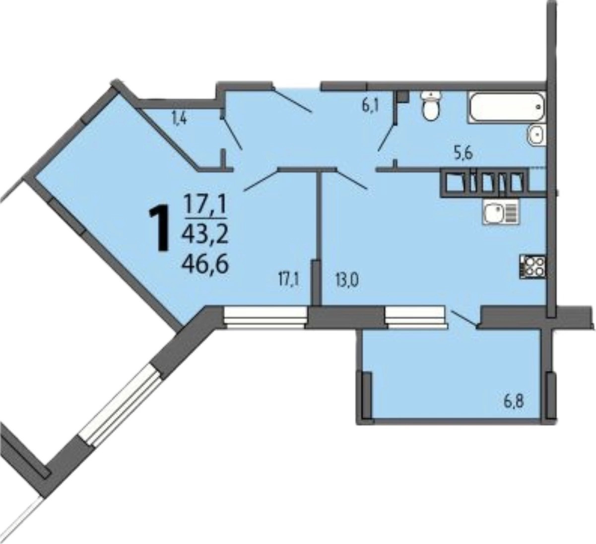 Балкон, лоджия 1 балкон