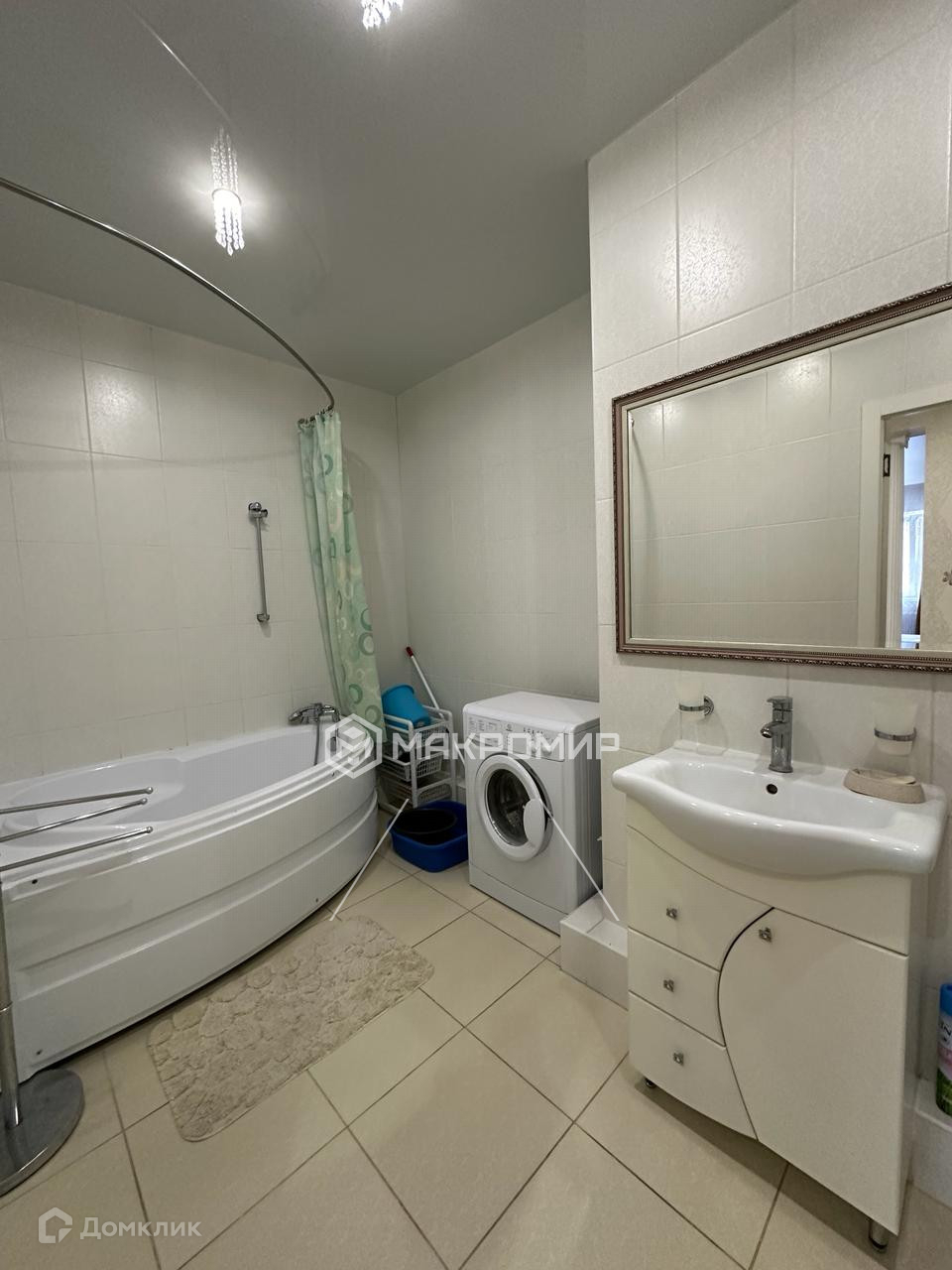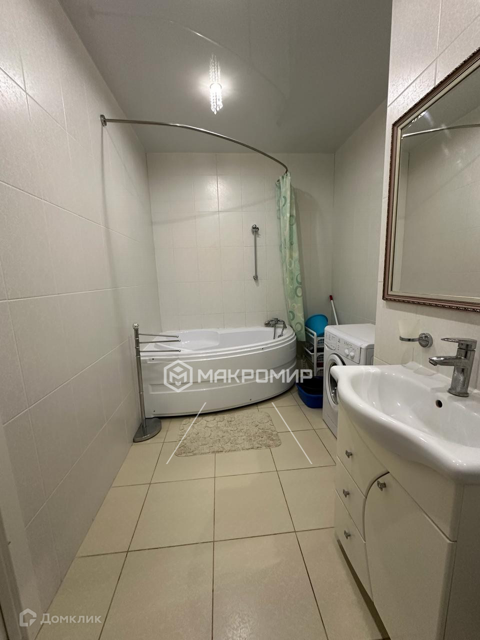 B квapтире на полу качественный ламинат, теплые полы,в ванной дорогая плитка и новая сантехника.