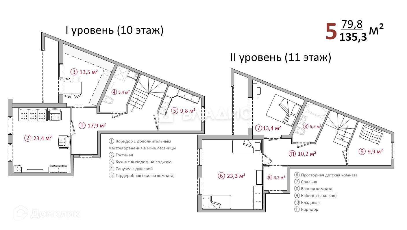 Жилая площадь 79.8 м2