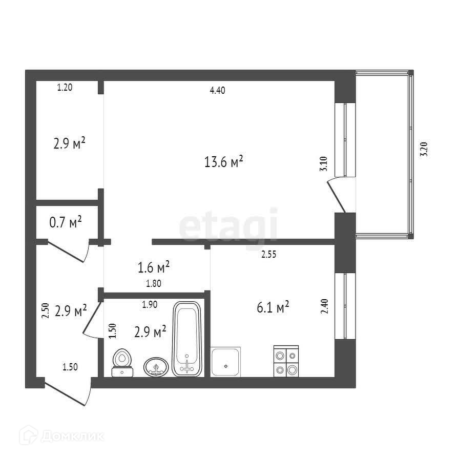 Балкон, лоджия 1 балкон