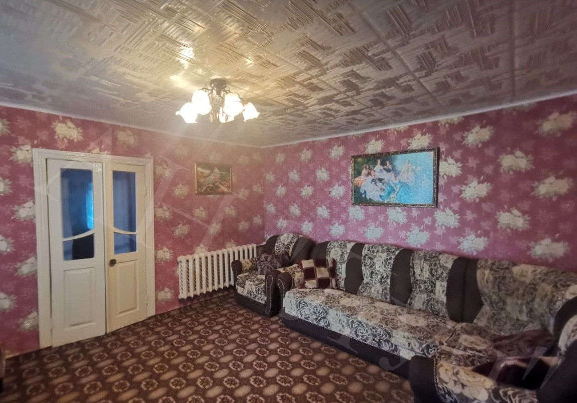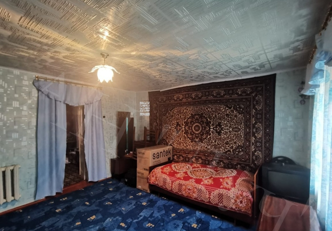 Материал стен: саман, облицован кирпичом, о/п 58,8 м2, из 3-х жилых комнат (смежные), кухня, санузел совмещен.