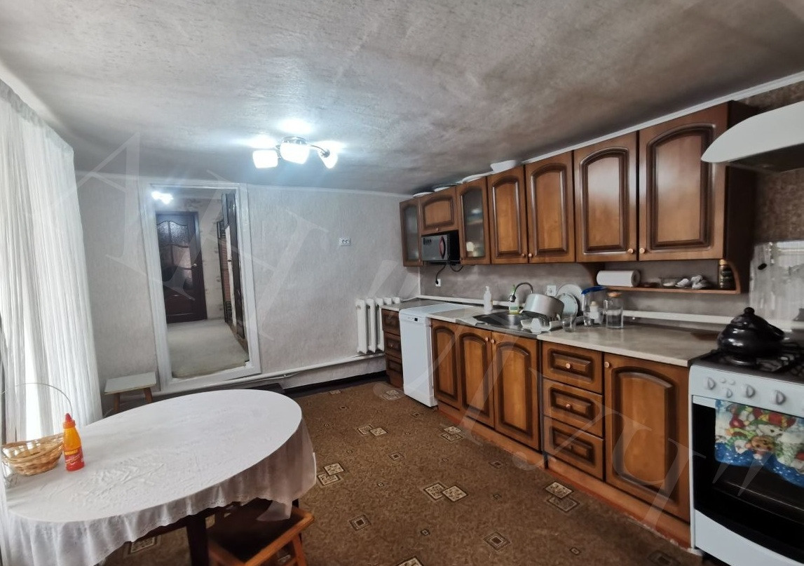 Материал стен: саман, облицован кирпичом; кирпич. О/п 90,1 м2, из 3-х комнат (смежные, раздельные), кухня – столовая, санузел совмещен.