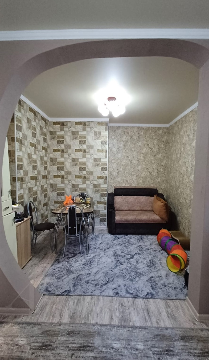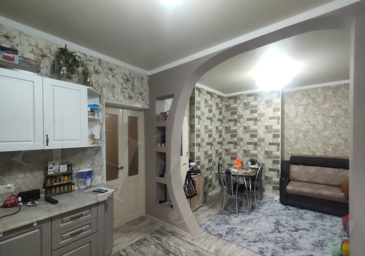 Евроремонт, заменены: электропроводка, трубы на воду и канализацию (центральная), отопление (в т. ч. радиаторы); выровнены полы, стены, натяжные потолки, окна ПВХ, новые двери, новая сантехника, интернет ТРИколор.