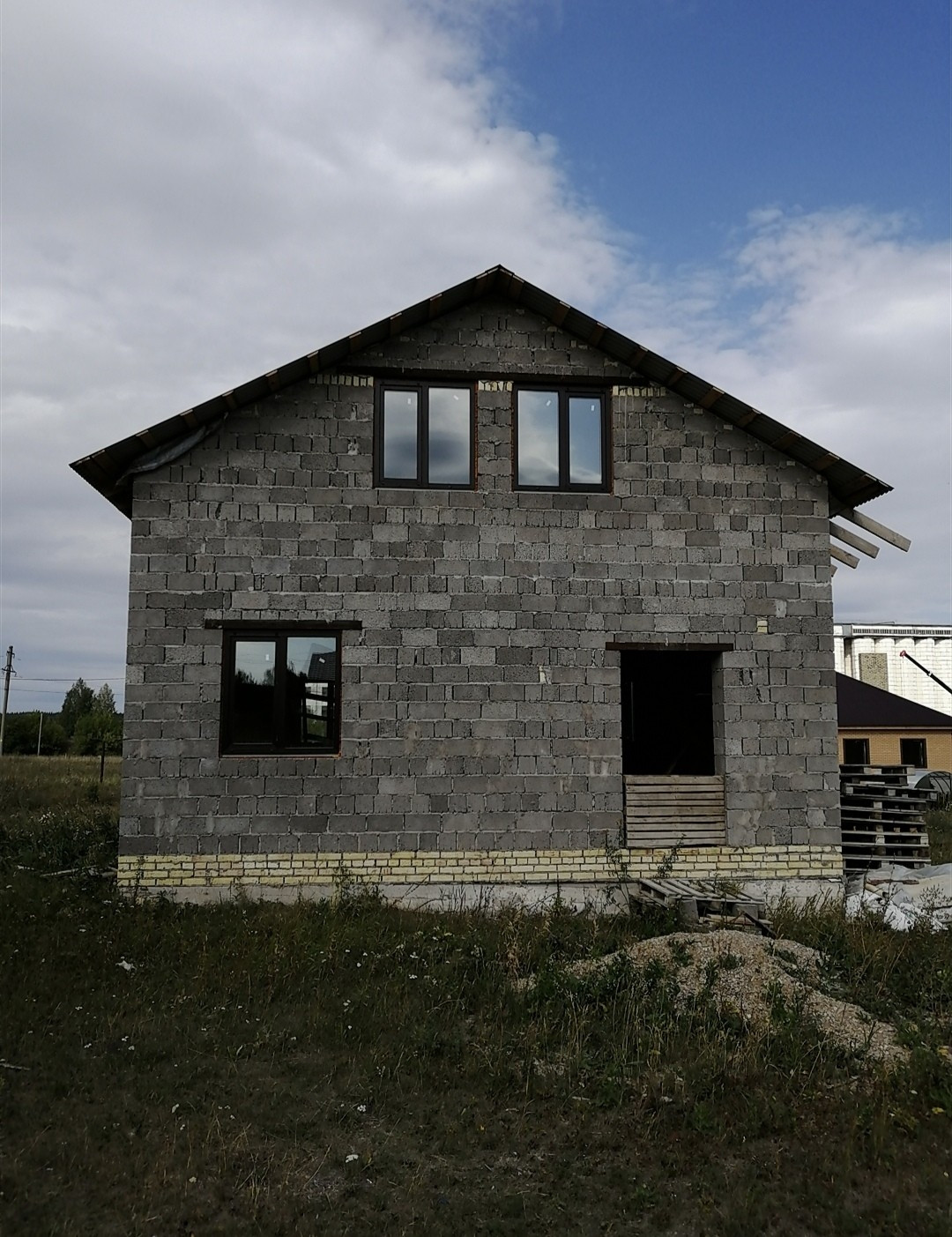 Продаётся дом с мансардой на стадии строительства. Документально полностью оформлен. В дом проведены вода и канализация. Входные двери куплены, осталось установить. Участок ровный. Респектабельные соседи, активно строятся. Живописная местность, рядом лесной массив. Покажем в любое время.