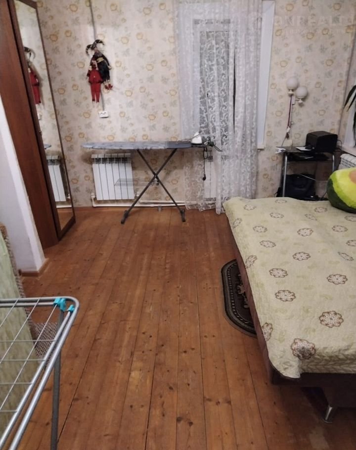 В одной из комнат линолеум,частично выровнен потолок.Во второй комнате полы полностью перебирались и уложена доска.К дому прилагаются небольшой участок под огород,хоз.постройки.