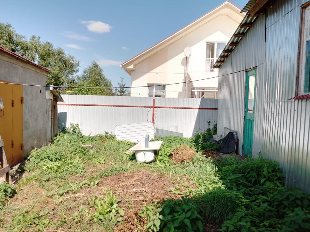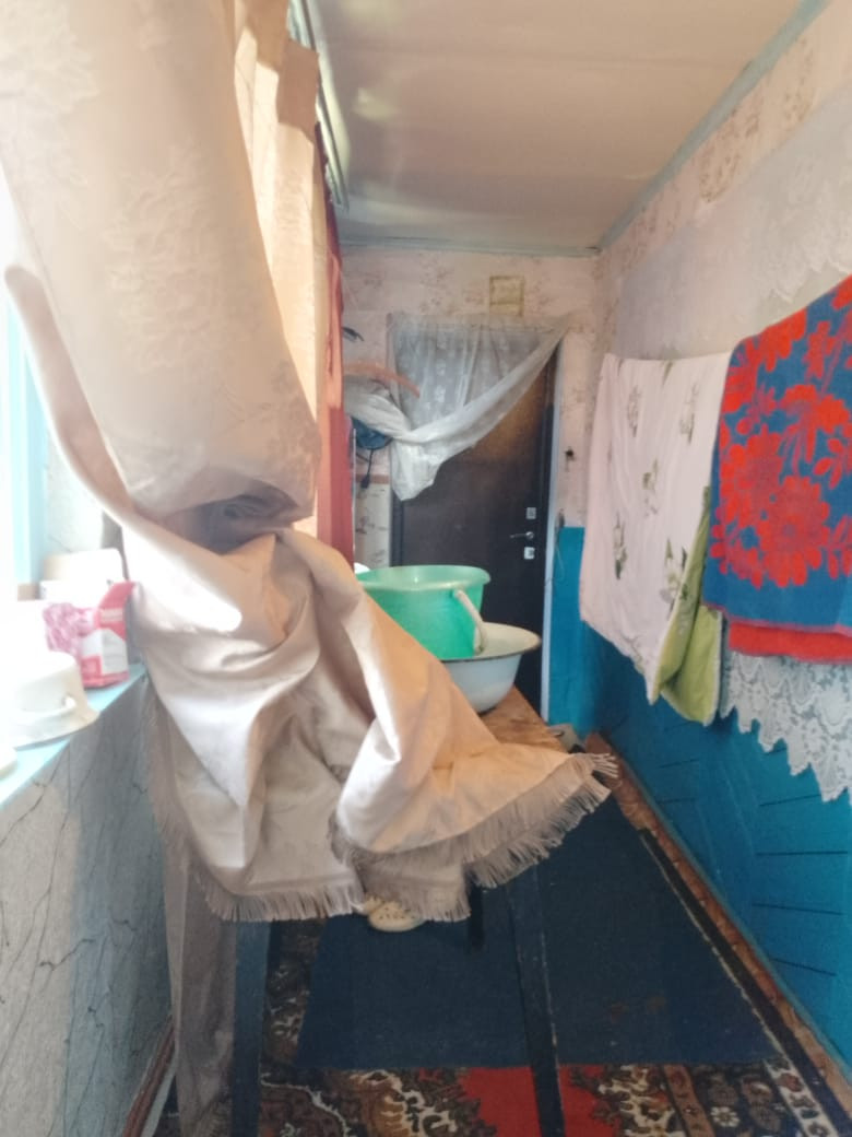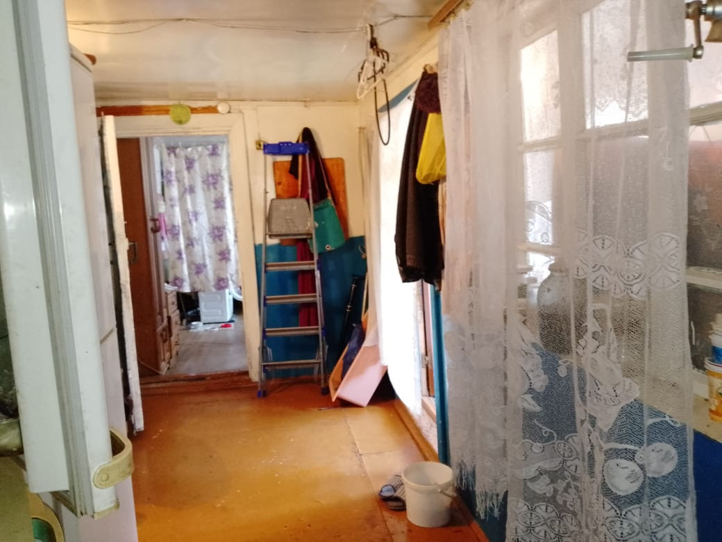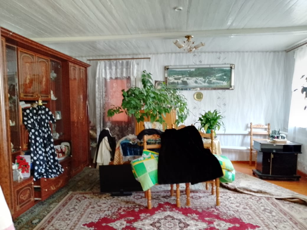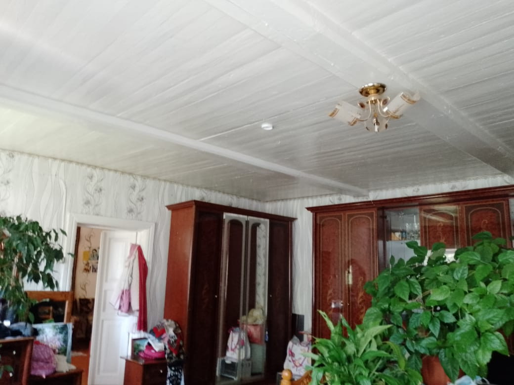 В доме две комнаты, кухня, большая веранда. Высокий потолок, дом хороший, светлый. Двор под навесом. На участке гараж, баня, большая хозпостройка, теплица из поликарбоната.