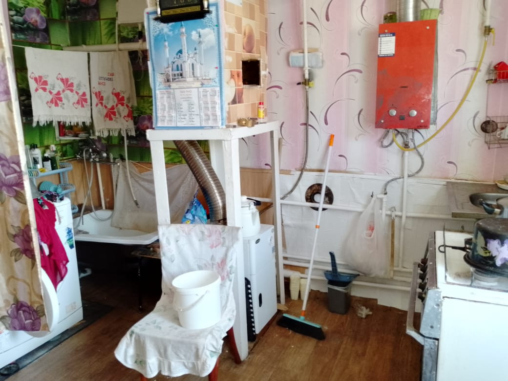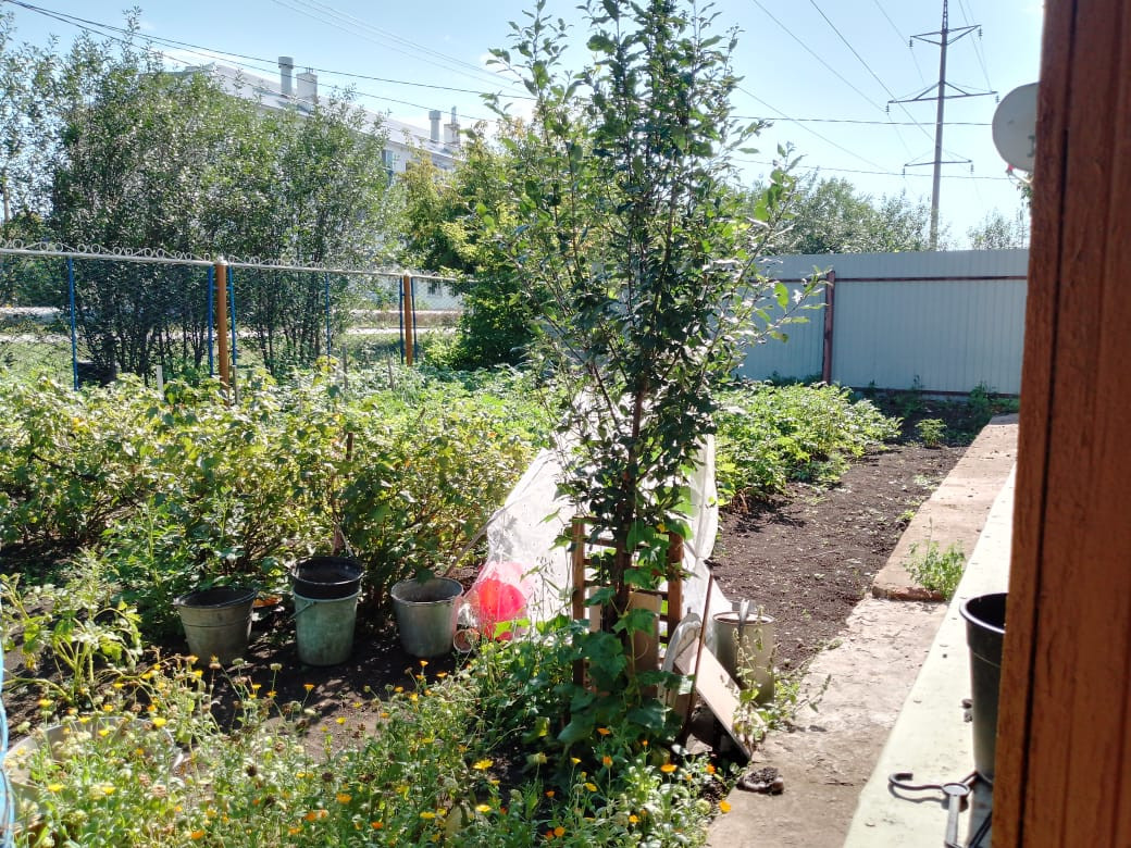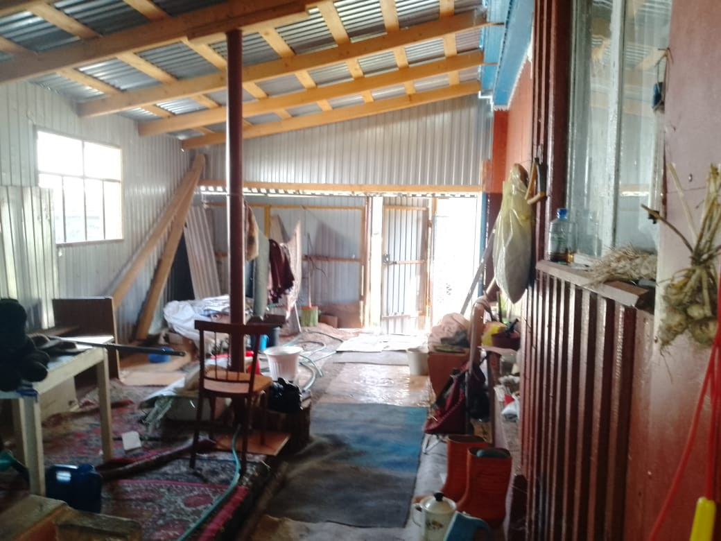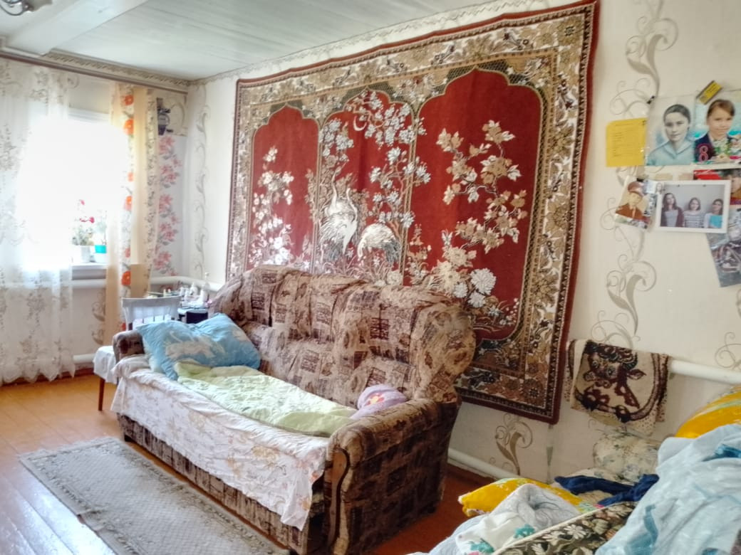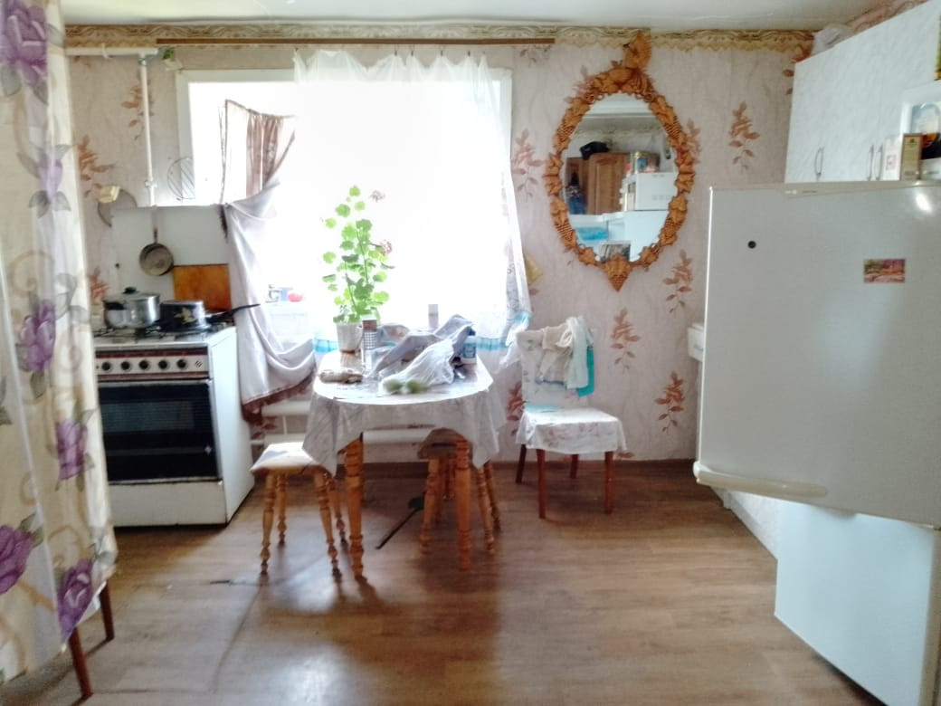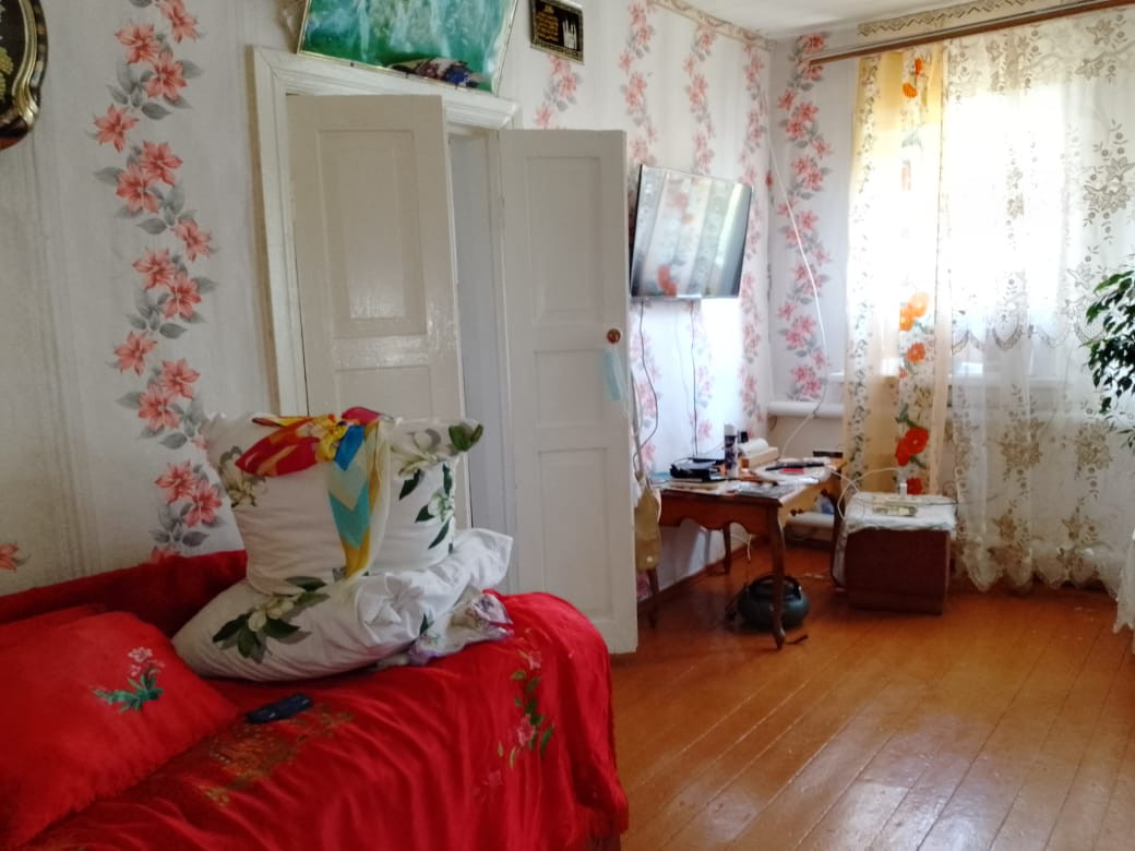В доме две комнаты, кухня, большая веранда. Высокий потолок, дом хороший, светлый. Двор под навесом. На участке гараж, баня, большая хозпостройка, теплица из поликарбоната.
