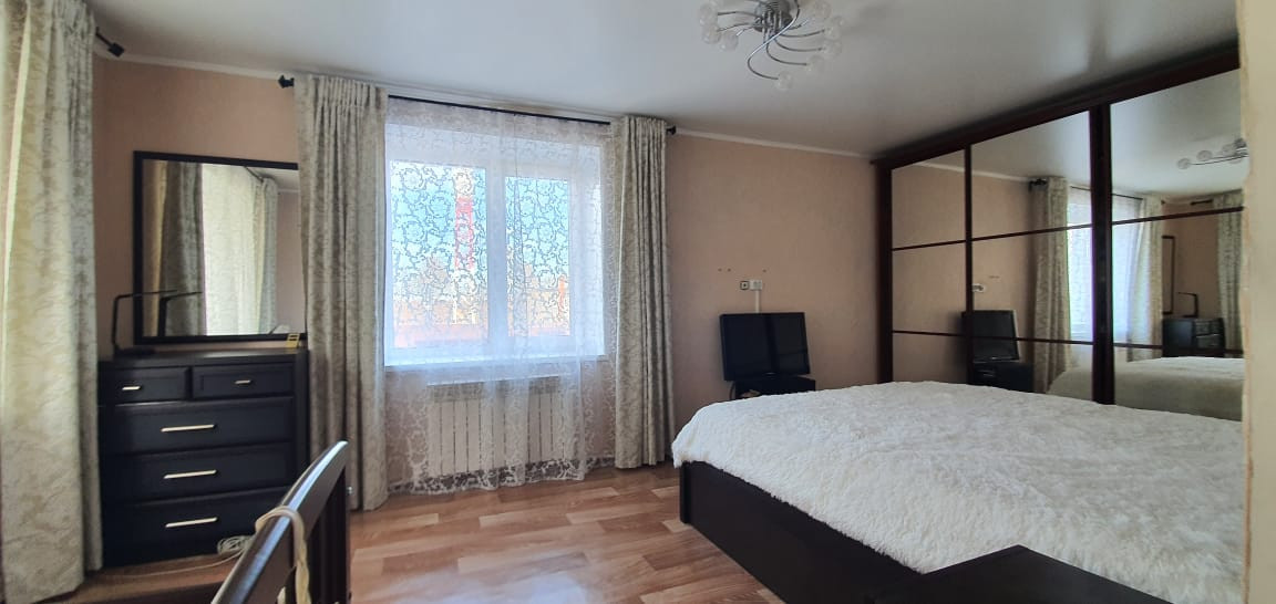 Район Автостанции. Под всем домом подвал. Два входа с отапливаемыми верандами. Веранда с выходом из кухни большая с панорамными окнами. На первом этаже  просторная гостиная, кухня совмещенная со столовой, раздельные ванная комната и туалет с теплыми полами. Современный ремонт. На втором этаже 3 спальных комнаты. Остается кухонный гарнитур, 2 шкафа купе, угловой шкаф.  Другая мебель по договоренности. Новые отопительные котлы. Во дворе расположены  большой гараж, баня (парилка, моечная в современной плитке, комната отдыха), тёплое хоз.помещение, 2 теплицы, открытая терраса для отдыха, ухоженная придомовая территория.