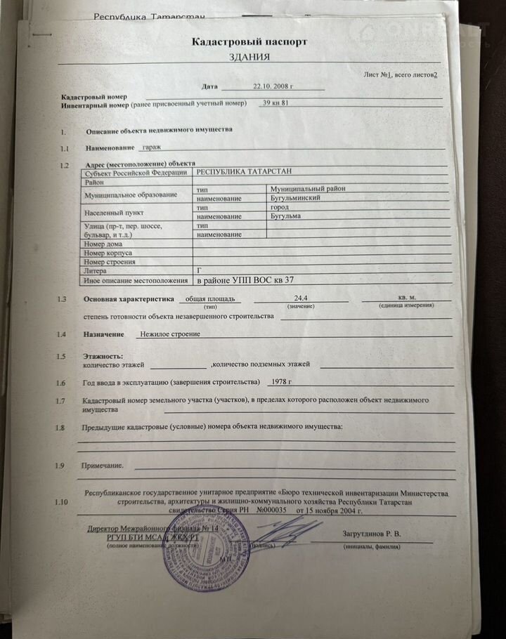 Кирпичный гараж, 24 м2, на продажу в Бугульме