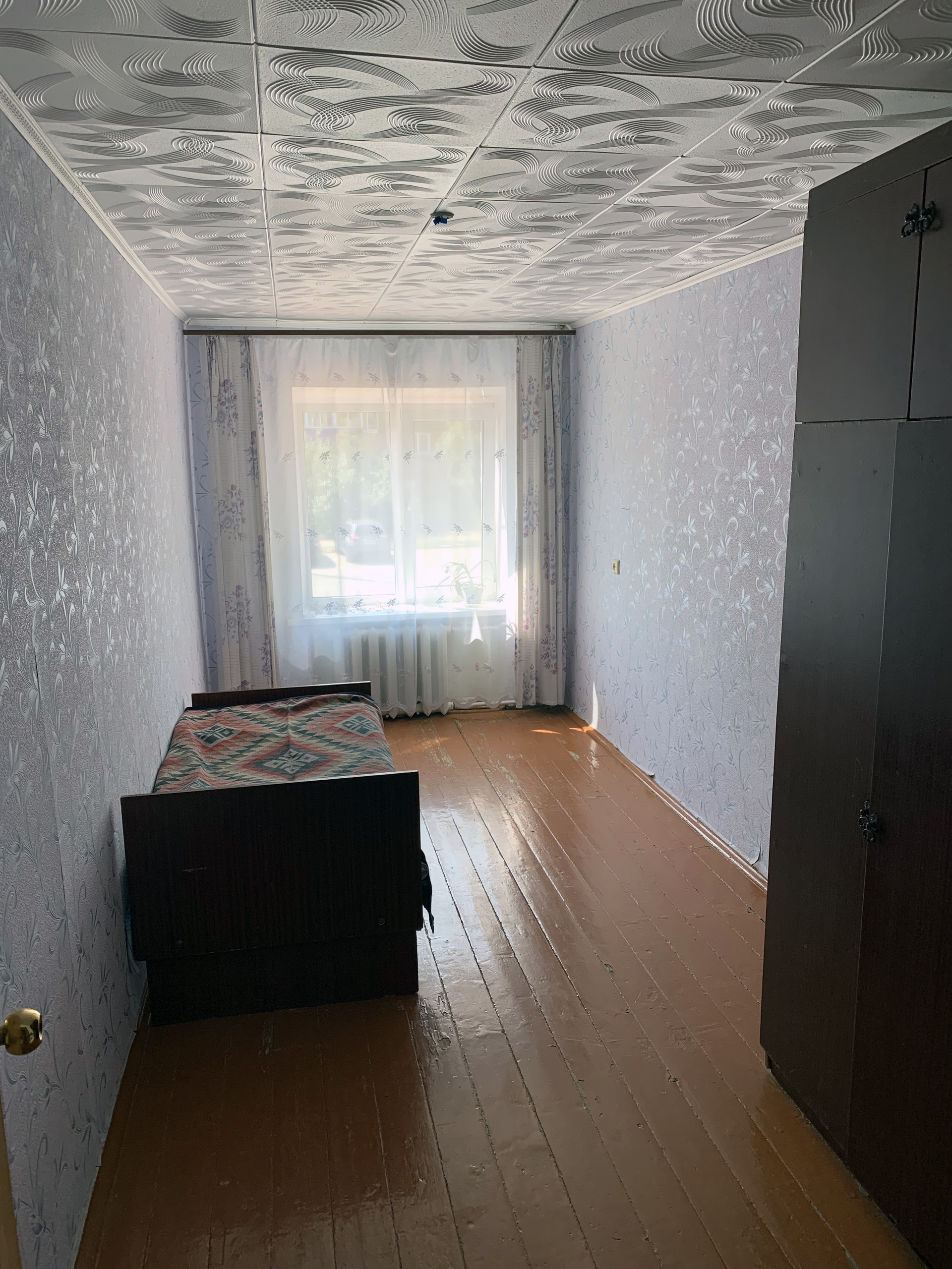 Квартира распашонка. Одна спальня выходит на юг, на улицу Космонавтов. Улица тихая, движение не сильное. Комната прекрасно подходит для обустройства детской. Остальные комнаты и кухня выходят на север в тихий двор. Обе спальни изолированы, большая комната проходная. Санузел совмещенный. Есть кладовая комната.
