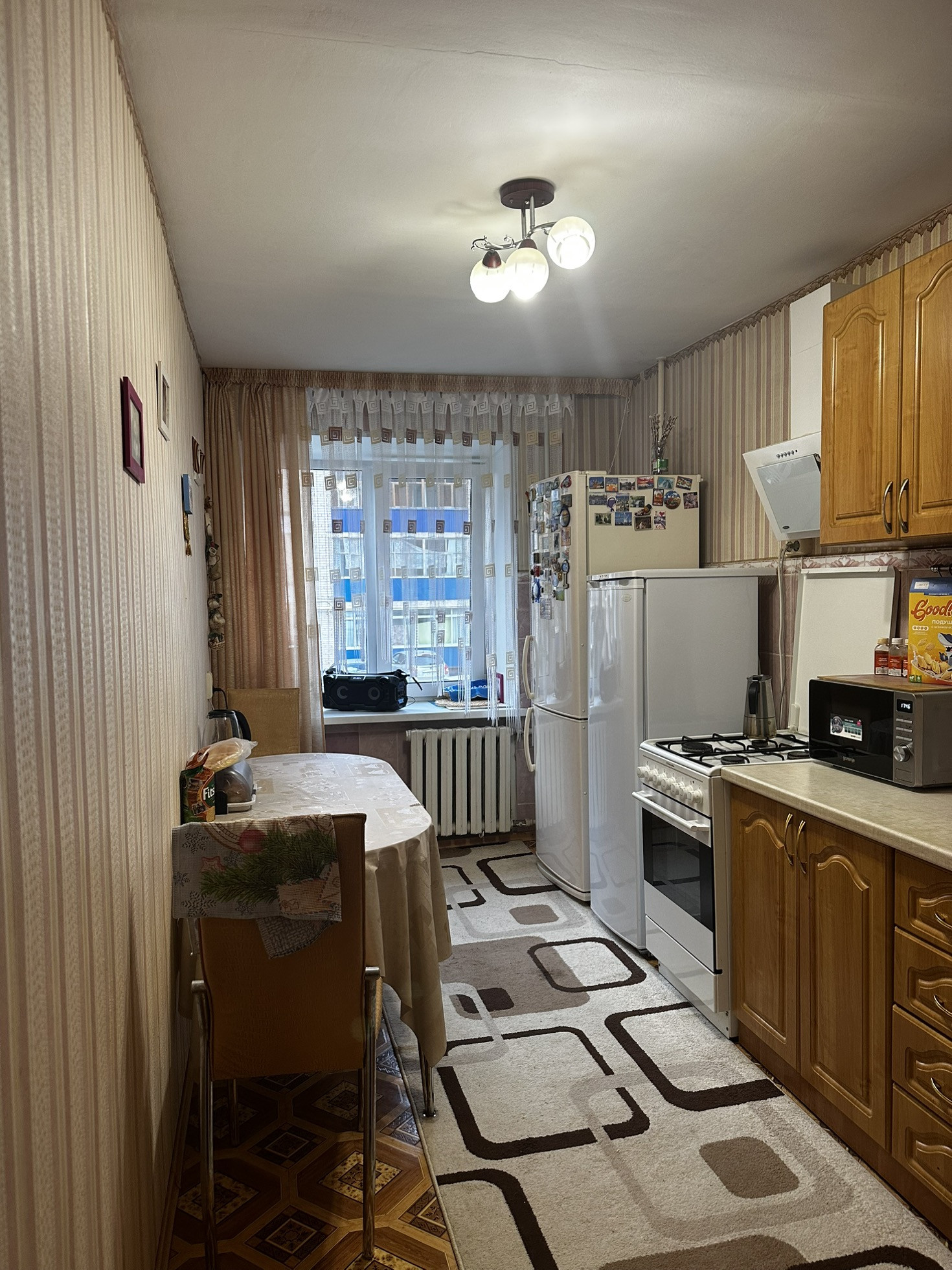 Квартира оборудована всем необходимым для проживания, мебель остаётся покупателю. Лоджия- теплые полы.