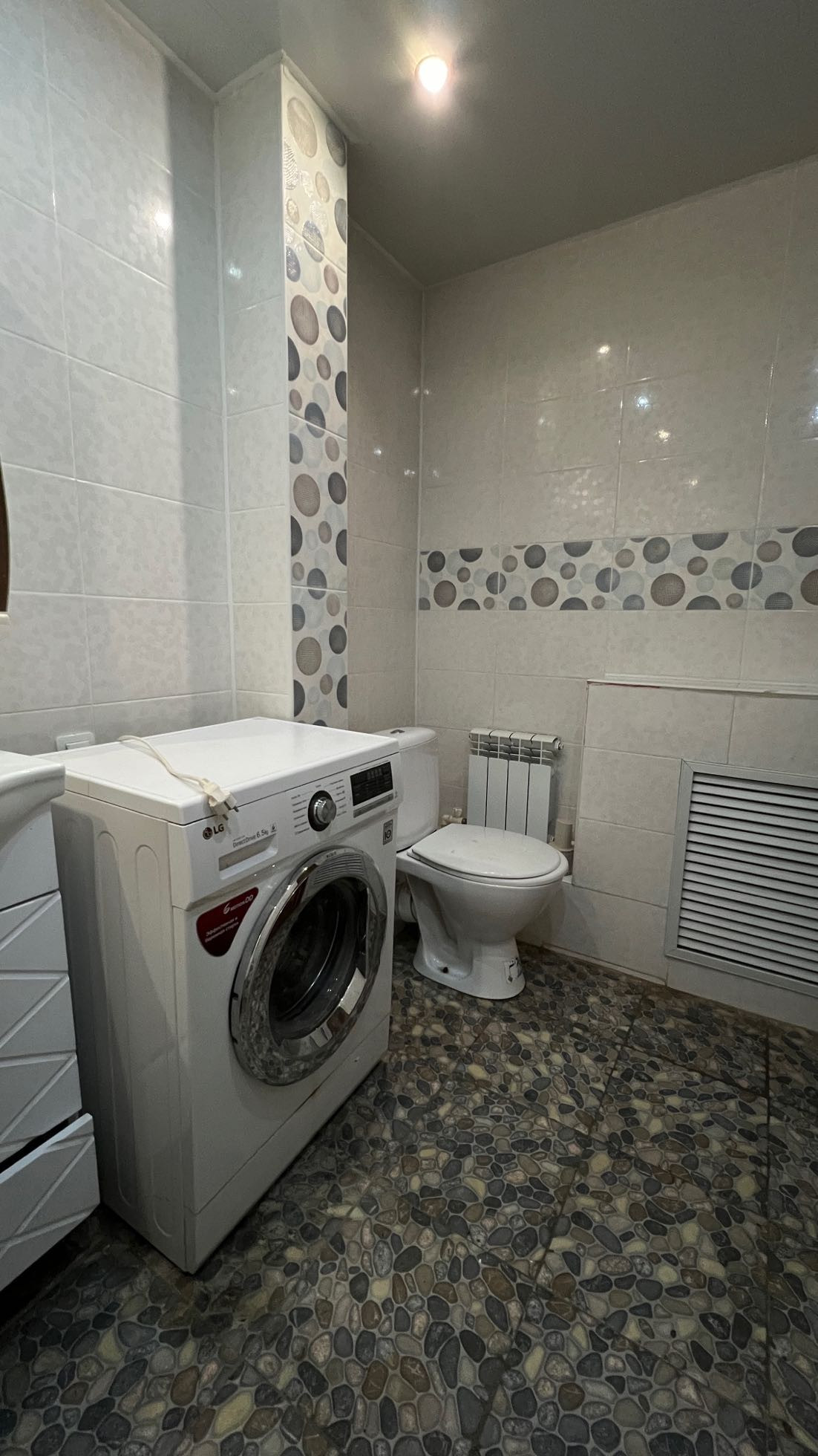 -Санузел совмещен,полностью в плитке и тёплых полах;