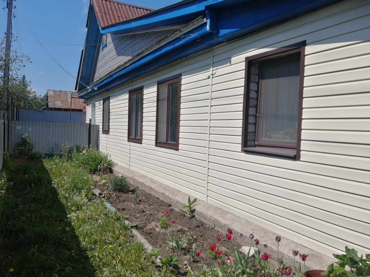 В шаговой доступности есть продуктовые магазины, школа, детский сад. Район спокойный. Дом и участок в собственности.