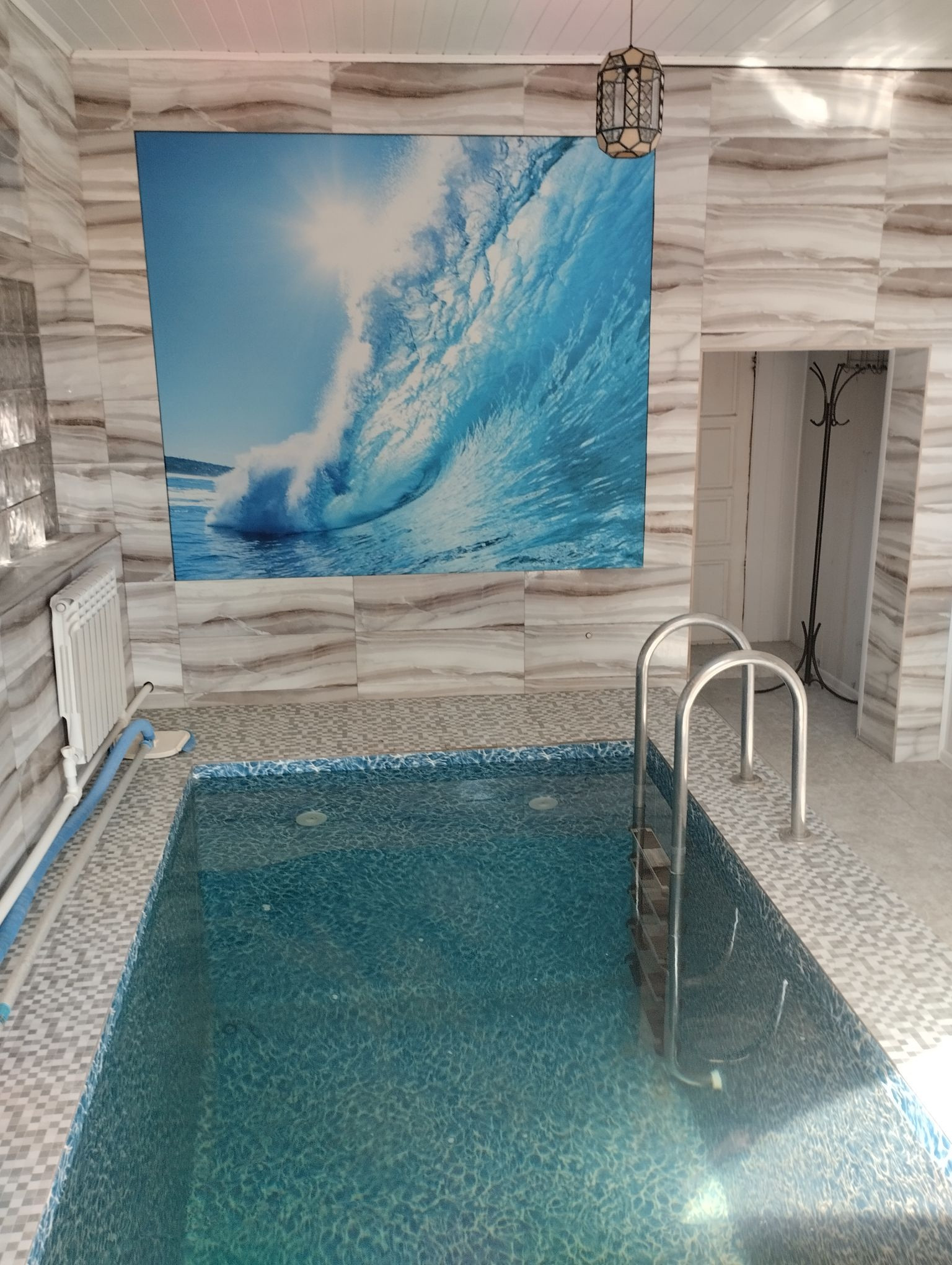 1 этаж : бассейн с системой очистки , подогрева и фильтрации, душ,туалет , финская сауна.