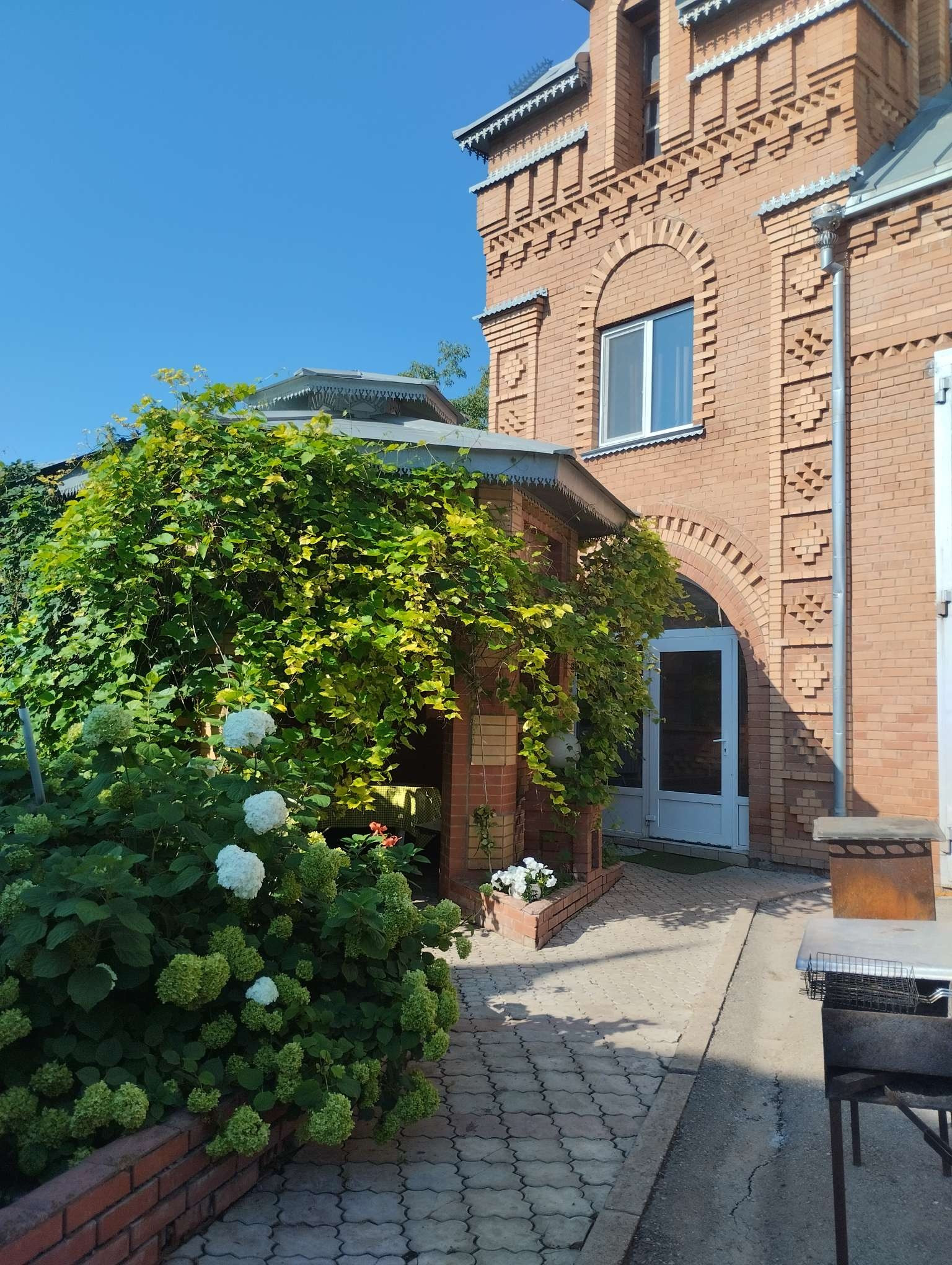 Два огромных гаража 12 х6 м высота 5,5 м на 4авто.Есть возможность разделения гаражей на этажи . На участке - красивая беседка в восточном стиле с камином, мангальная зона.