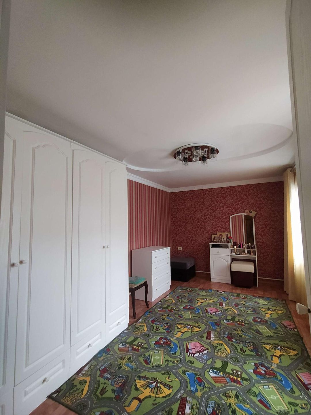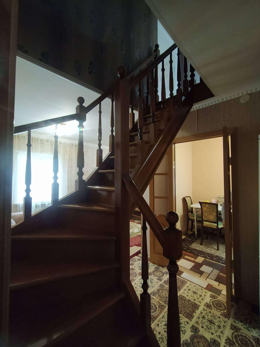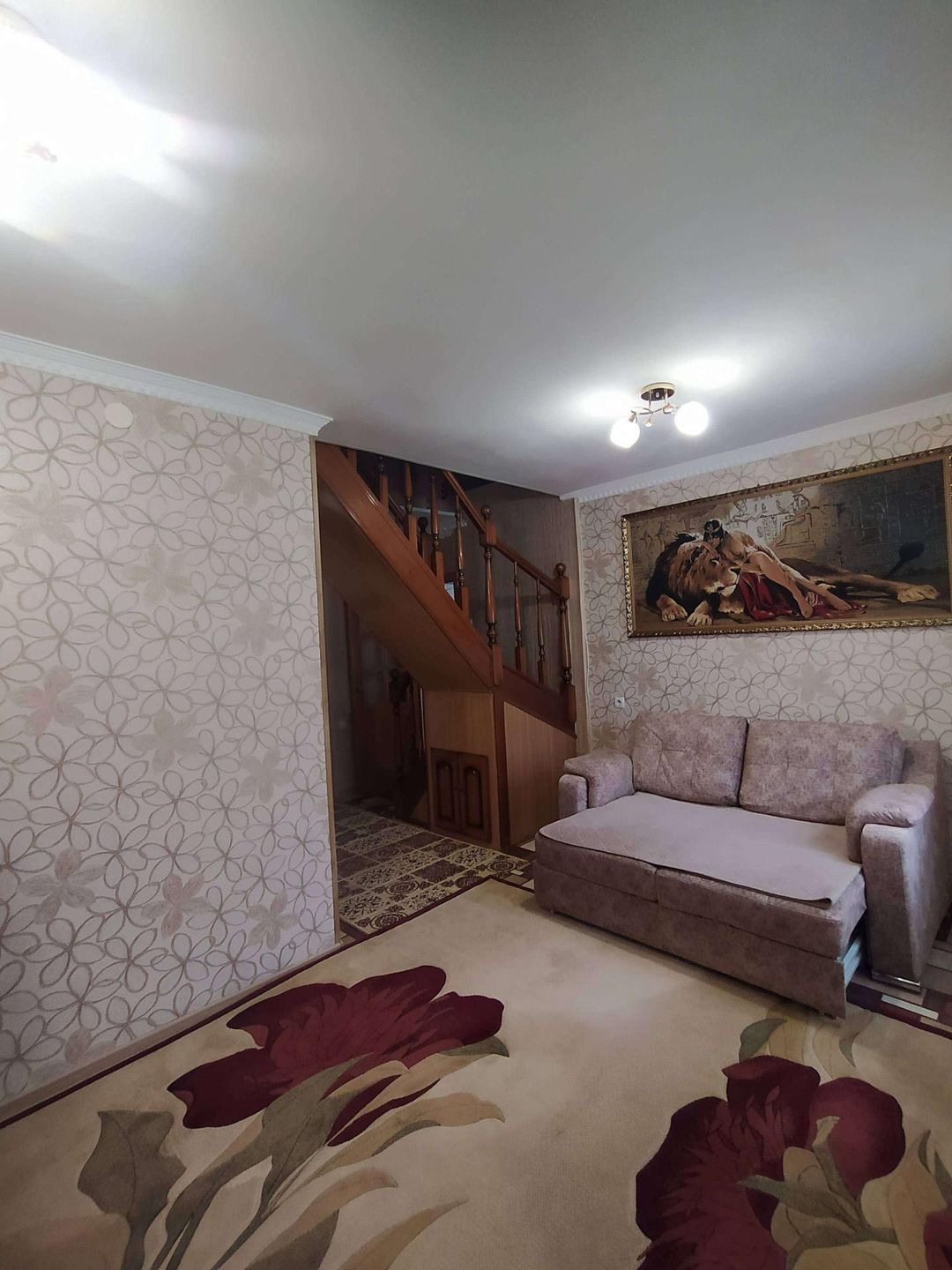 спальным местом, кухня,зал, санузел( душевая кабина). Лестница на второй этаж из дуба, на втором этаже: детская комната и спальня, в доме остаётся вся мебель , ( шкафы,тумбы,кровати,кухонный гарнитур,ковры,дорожки,люстры,портьеры,шторы) техника ( кроме компьютеров),В доме хороший свежий ремонт ровные полы потолки ,стены , в прихожей и санузле теплый пол, автономное отопление: двухконтурный котёл, центральное водоснабжение, канализация- выгребная яма .