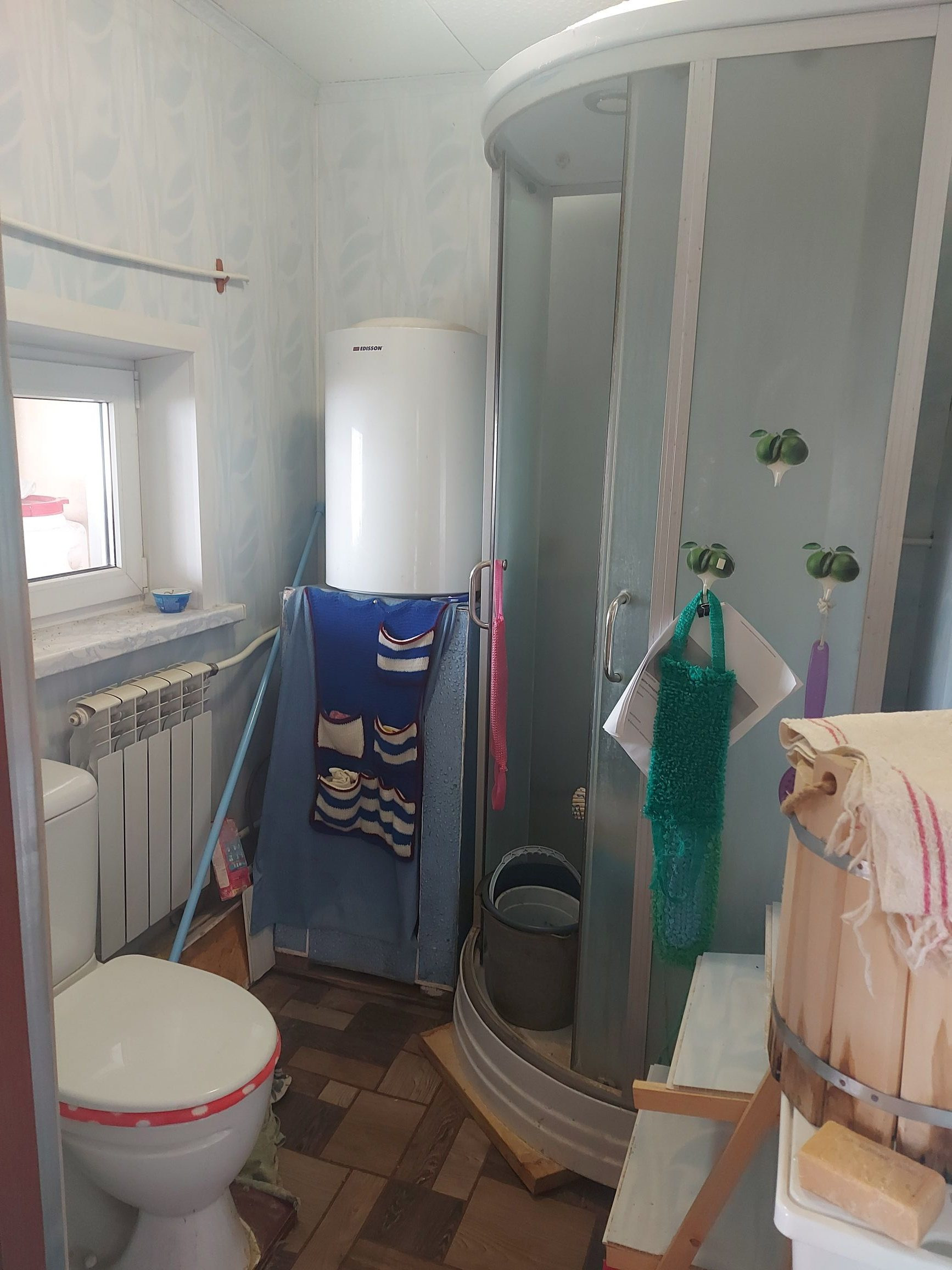 Продаётся дом. 60.9 кв.м², две комнаты, кухня. Водоснабжение, газ, свет - всё проведено. В доме установлены пластиковые окна, газовый котёл и водонагреватель а так же есть санузел. Земельный участок площадью 4.84 кв. метров.