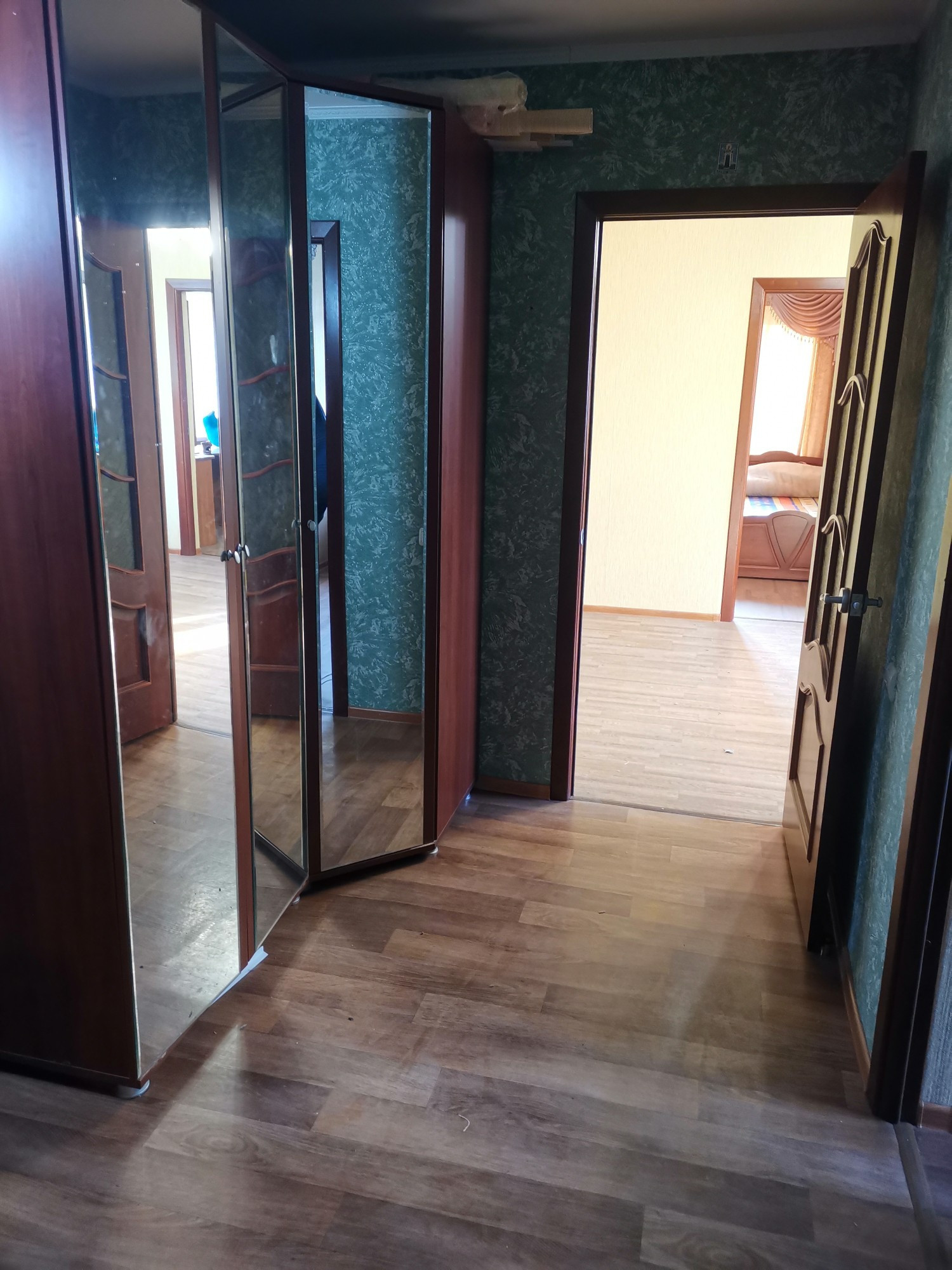 В квартире стеклопакеты, частично мебелированно, натяжные потолки, железная дверь. Рядом с домом детский сад, школа, магазины, больница.