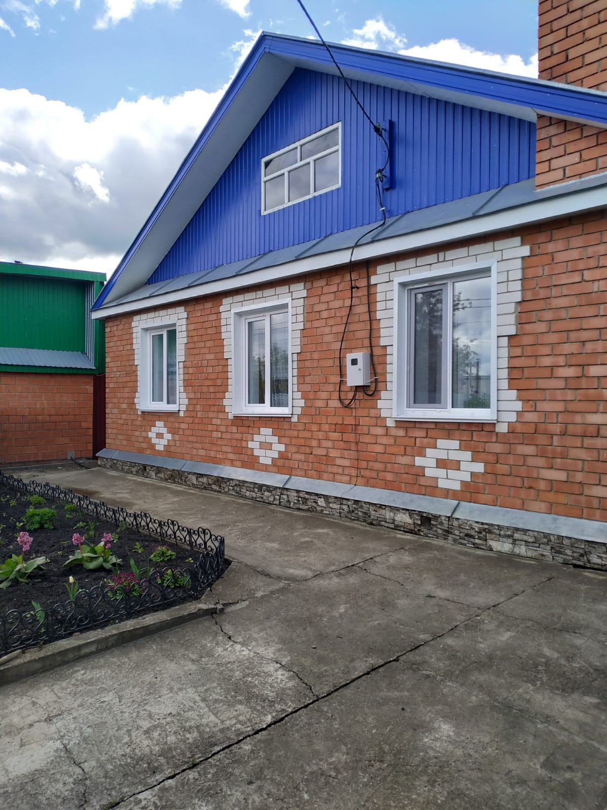 Перед домом облагороженная территория.