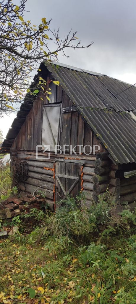 Дом построен из бревен, крыша из шифера.