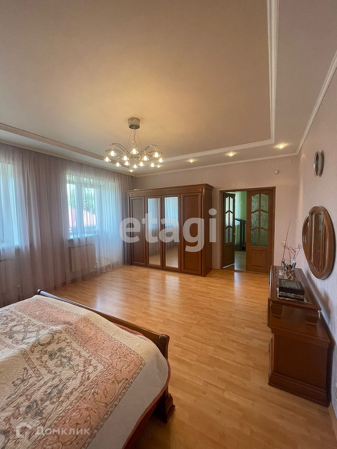 В доме: 5 жилых комнат, 3 сан.узла, 1 кухня, 2 прихожие, коридор, хоз-блок, котельная, цоколь, гараж с выходом из дома.