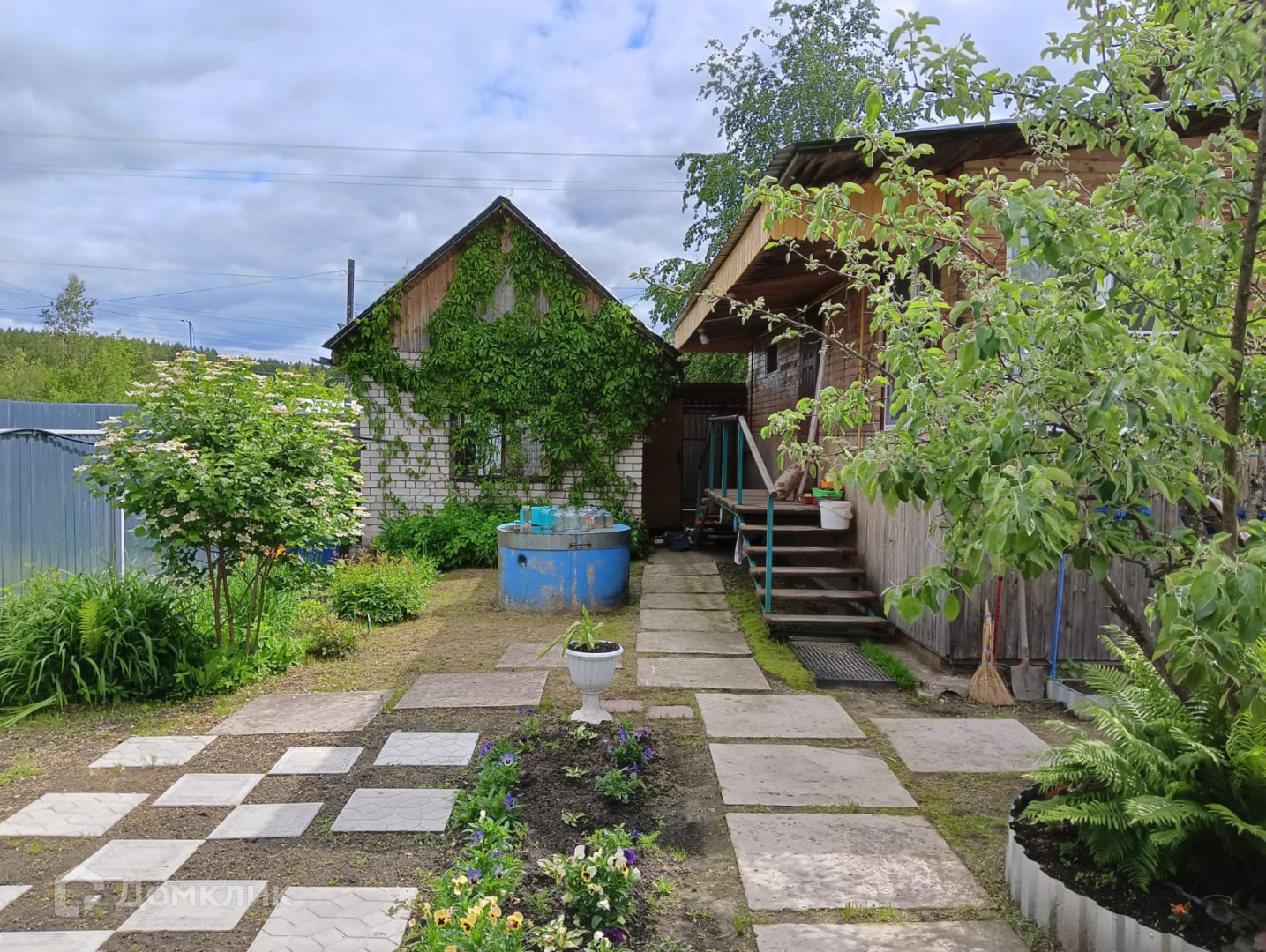 Участок при доме: ухоженный с плодовыми насаждениями(яблоня, калина, малина, клубника).
