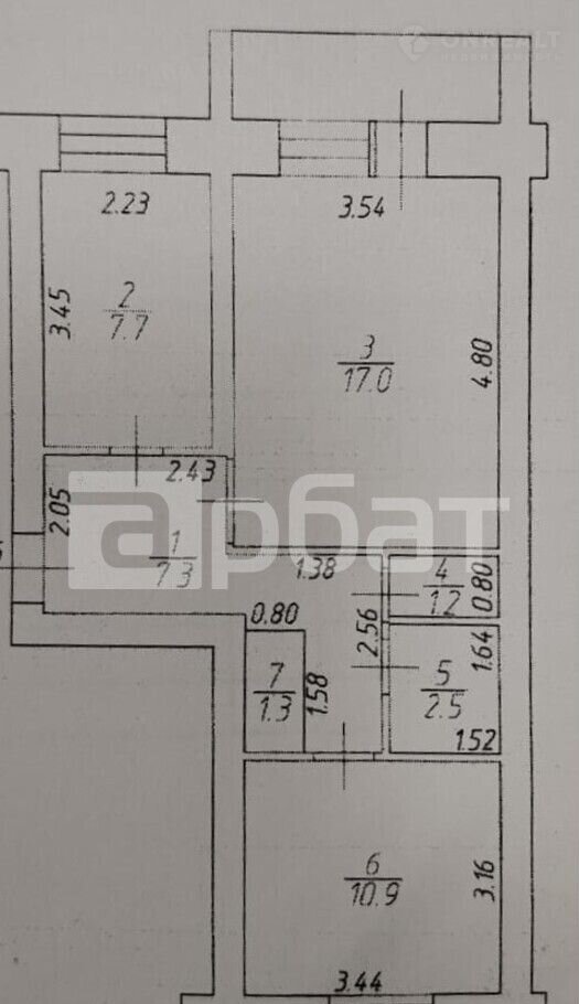 В квартире удобная планировка: прихожая, комнаты 17,0 кв.м. и 10,9 кв.м. на разные стороны дома, кухня 7,7 кв.м. ванная комната, туалет, балкон застеклен ПВХ.