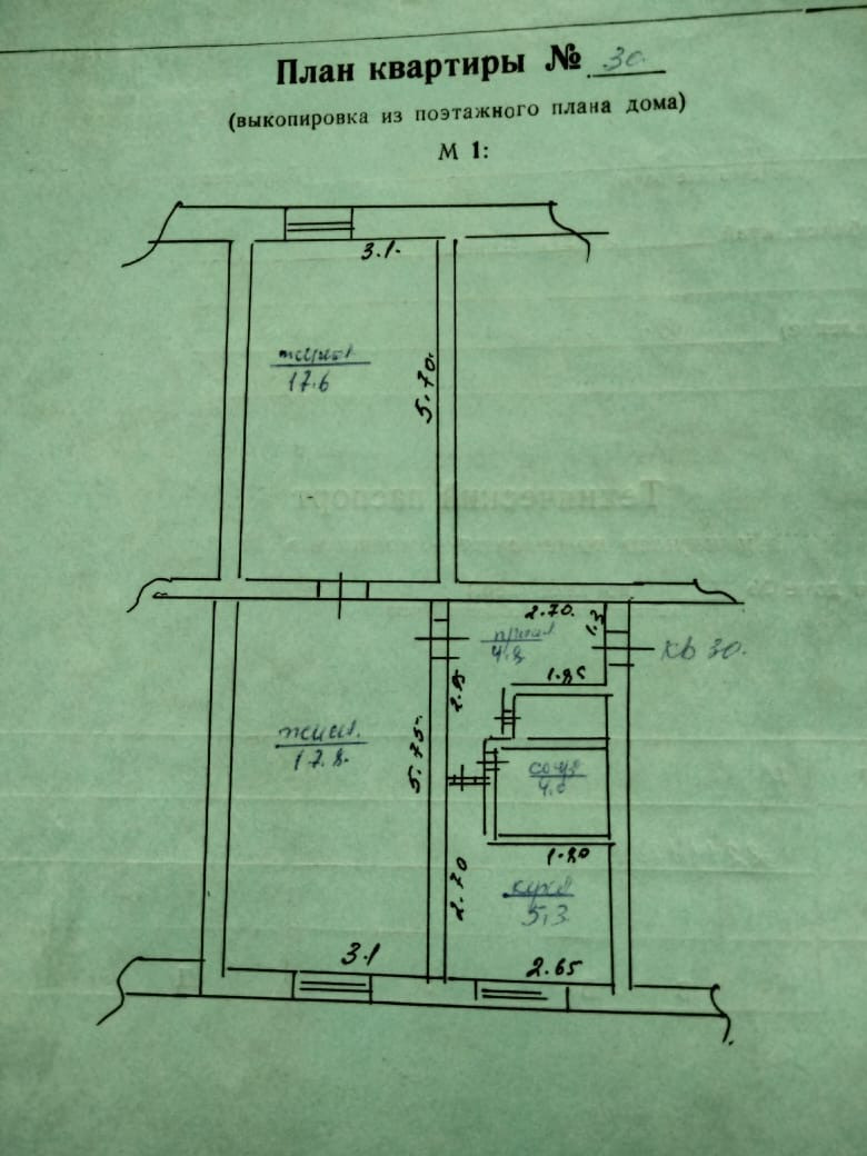 Общая площадь 50.3 м2