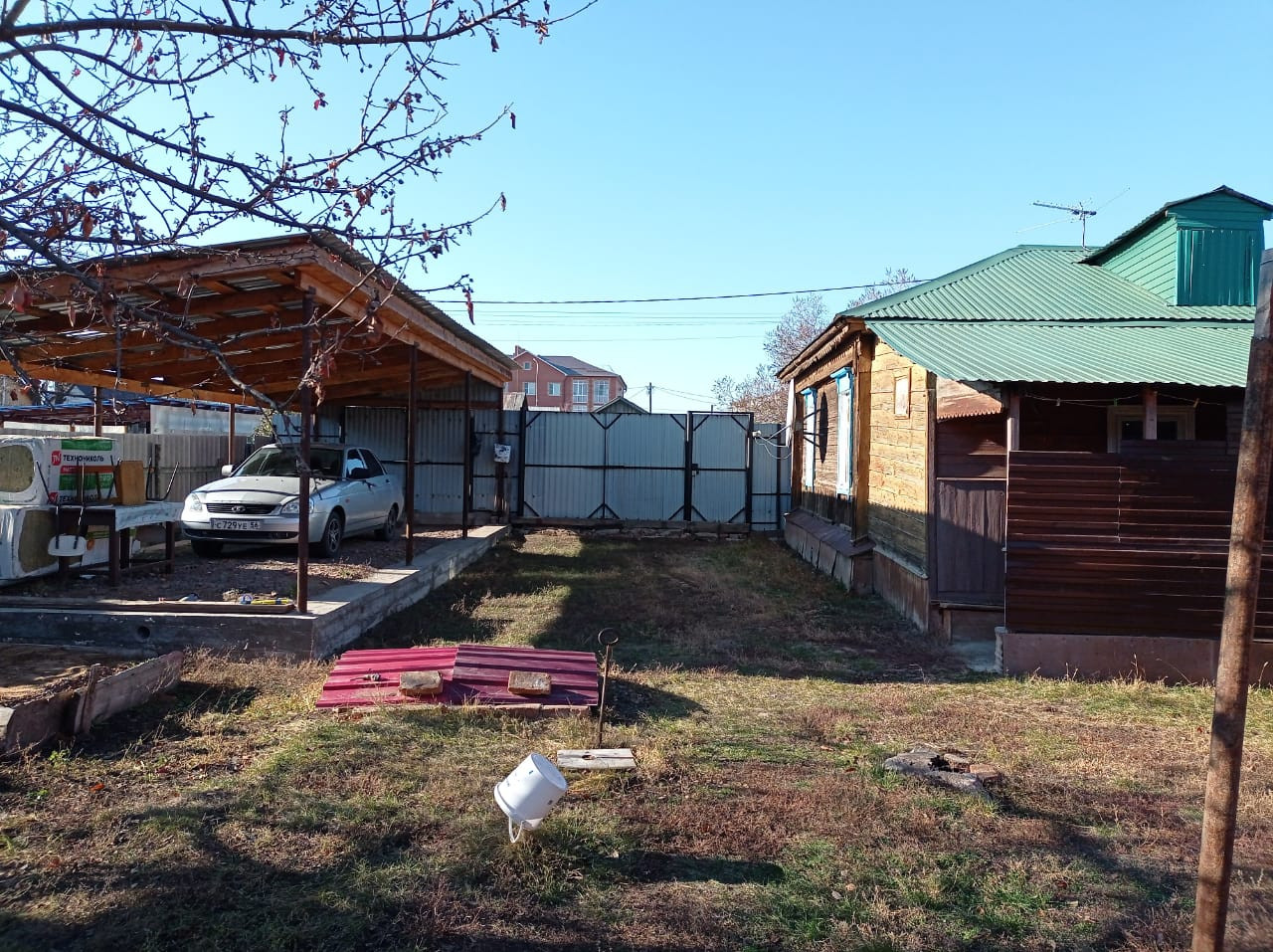 на участке два дома, навес для машины.