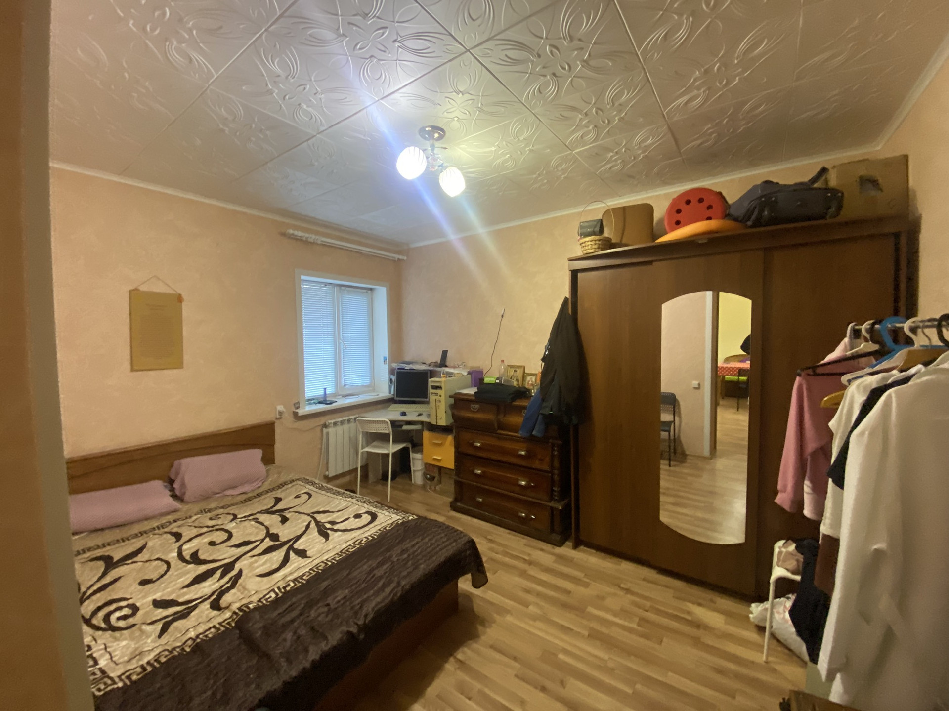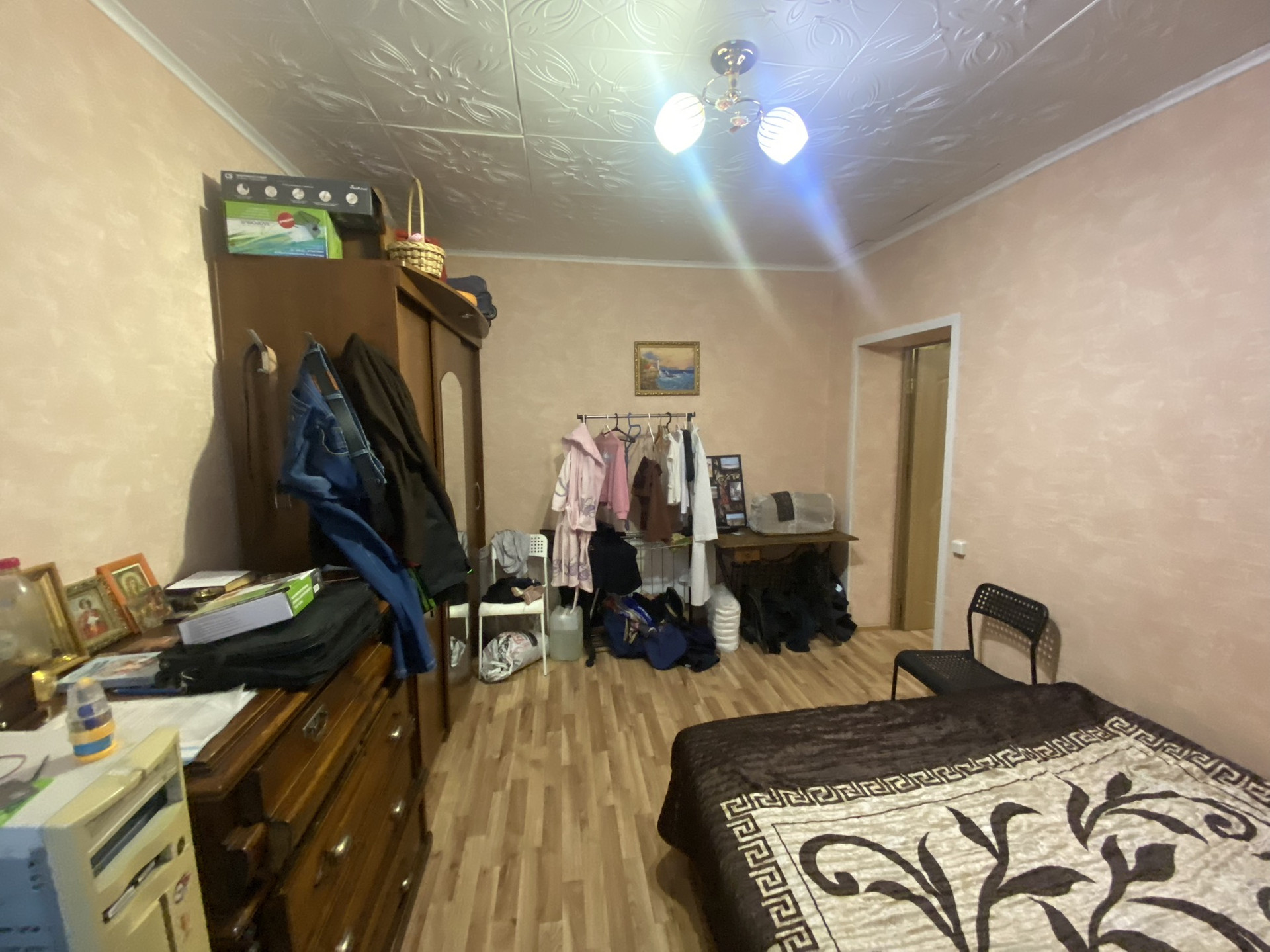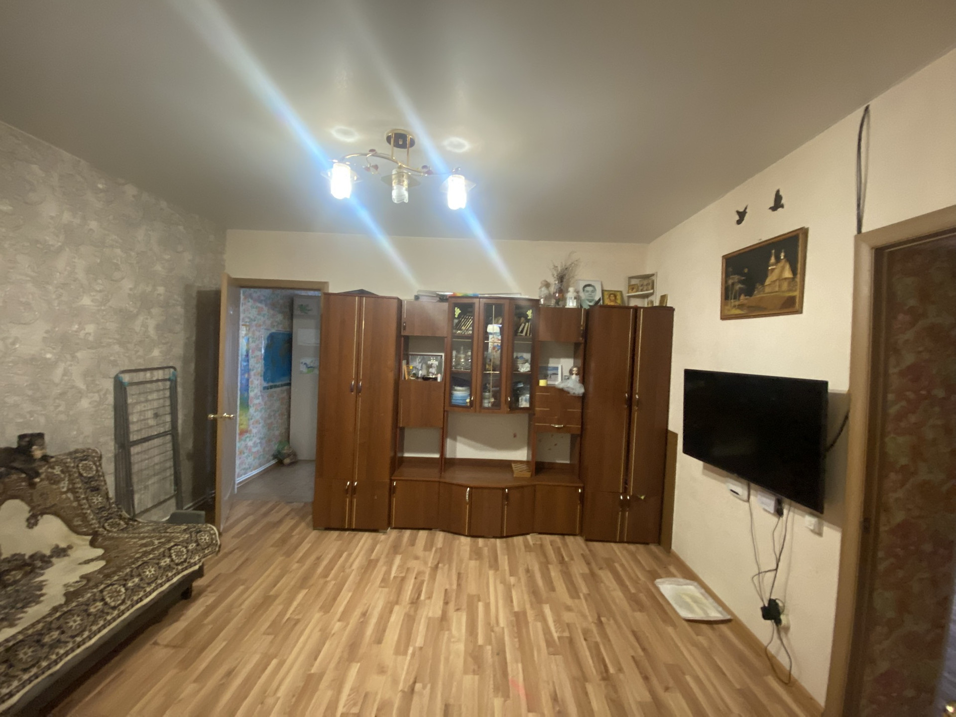 Светлые  комнаты,проводка заменена,полы залиты,двери новые ,натяжные потолки.