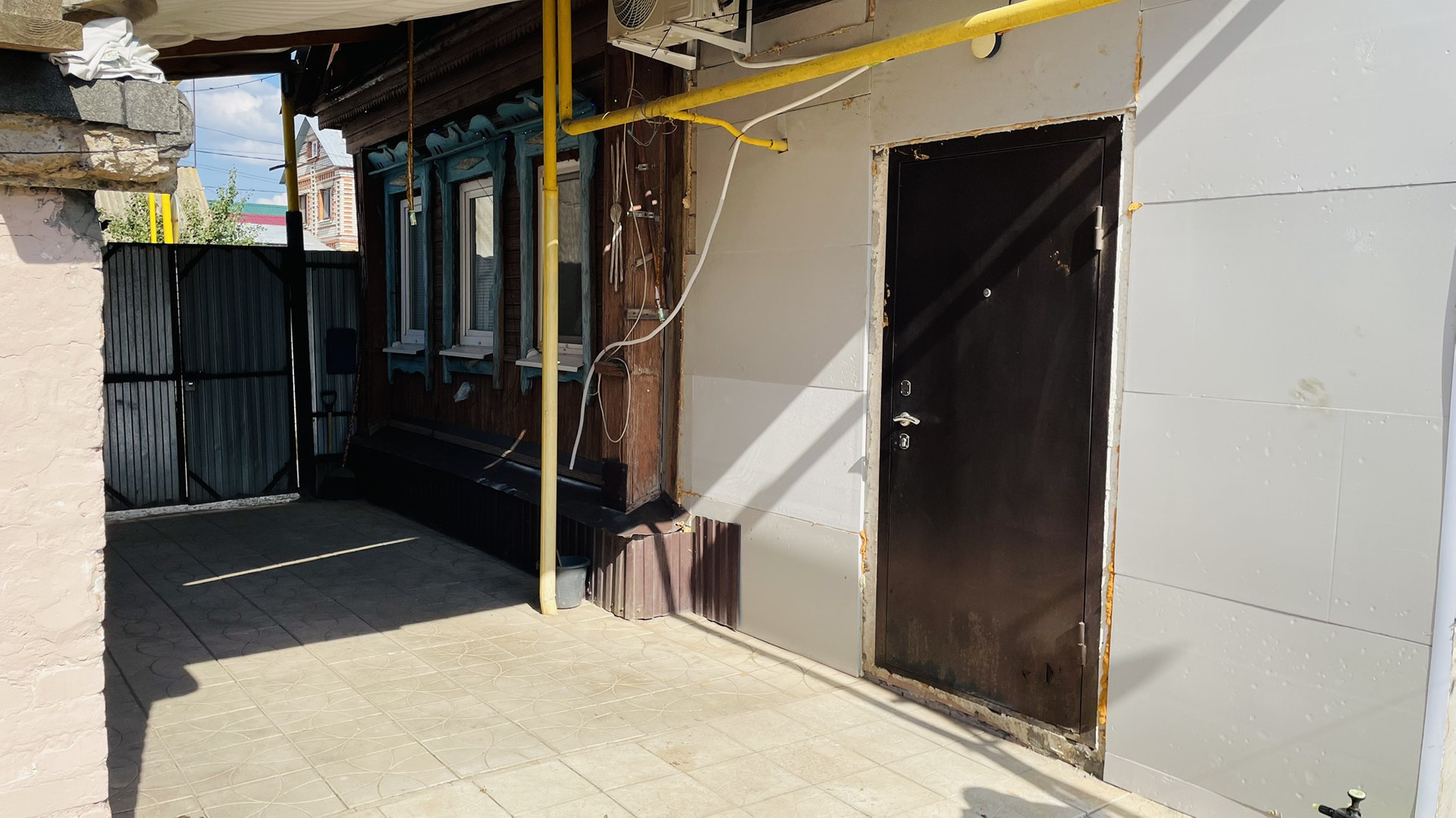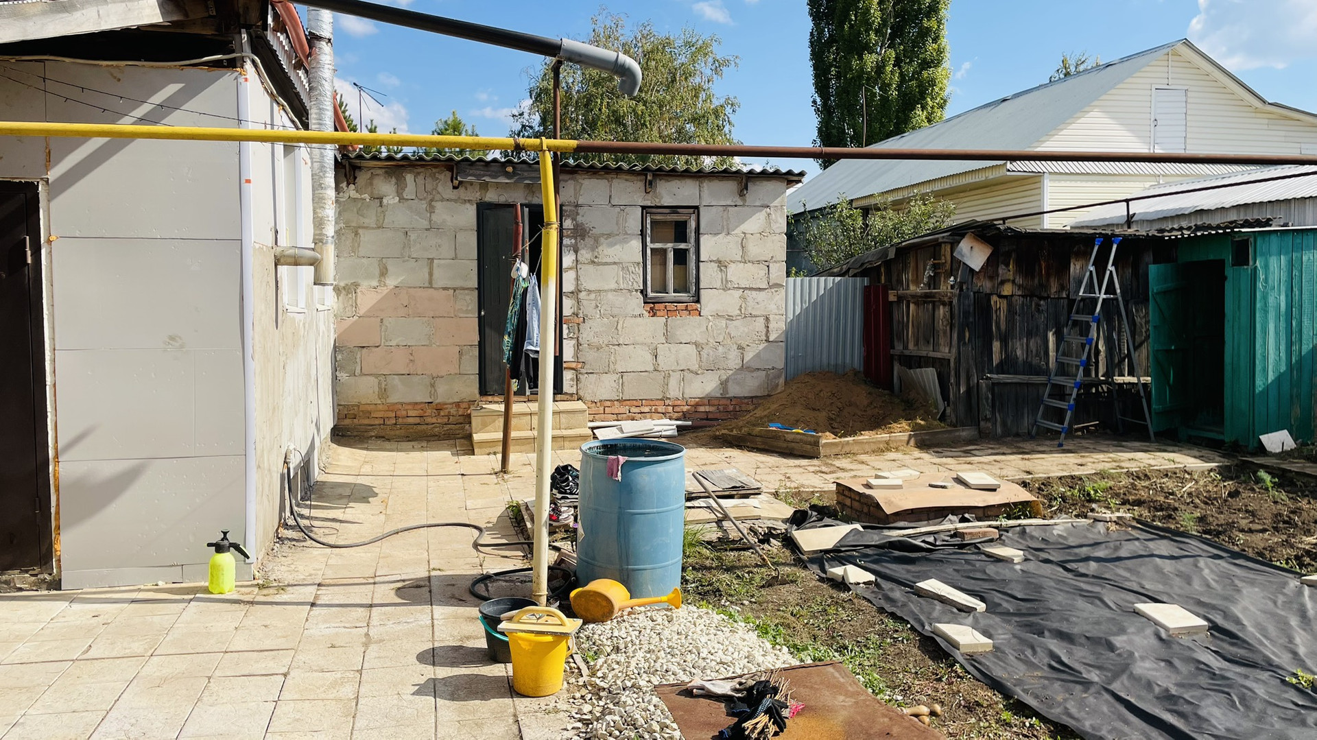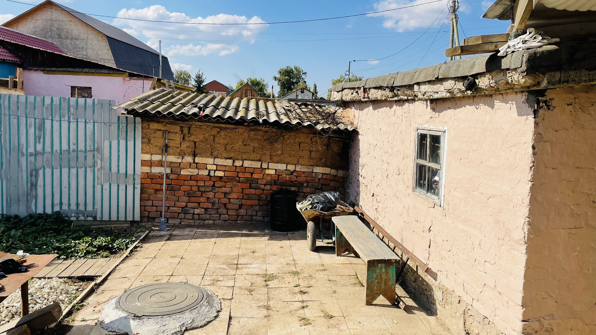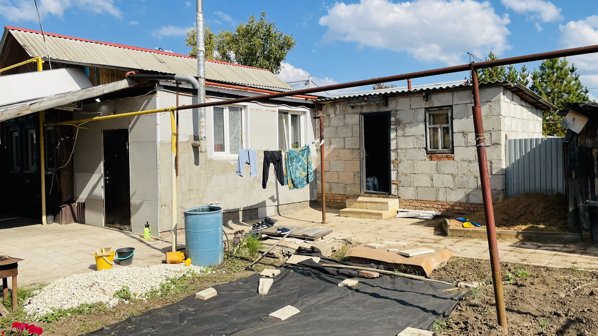 На участке, сарай с погребом.просторный гараж , навес можно загнать еще одно авто , на территории плитка по фото видно , возле дома щебенка .