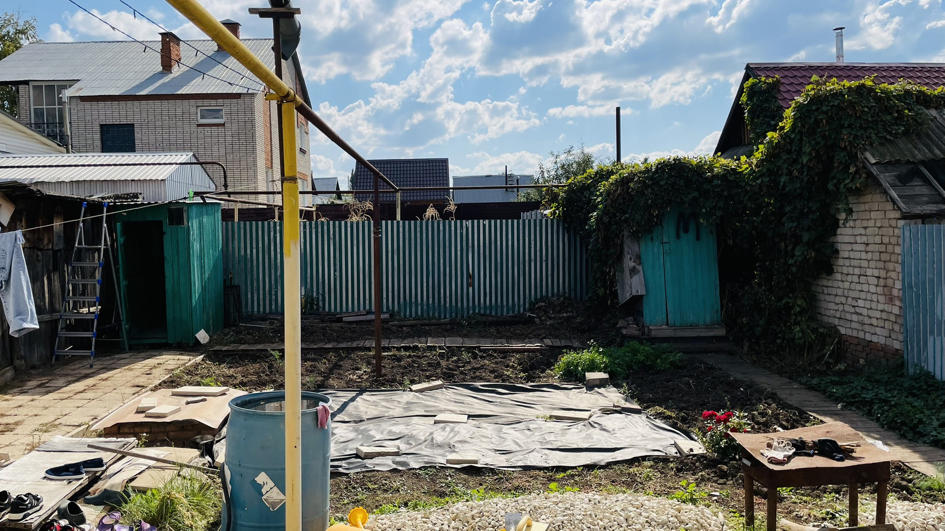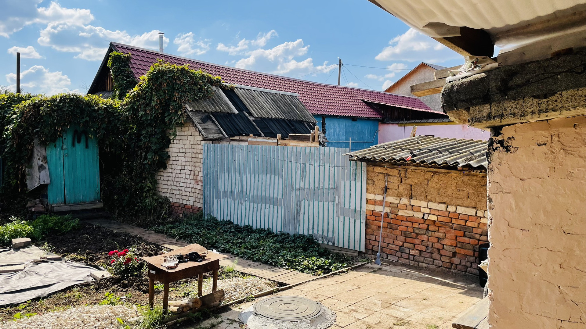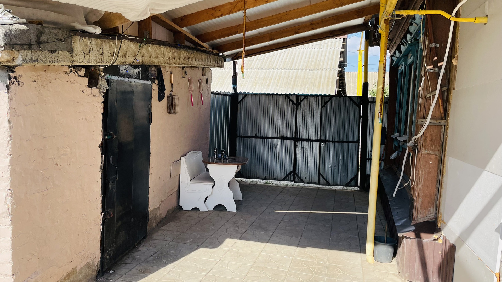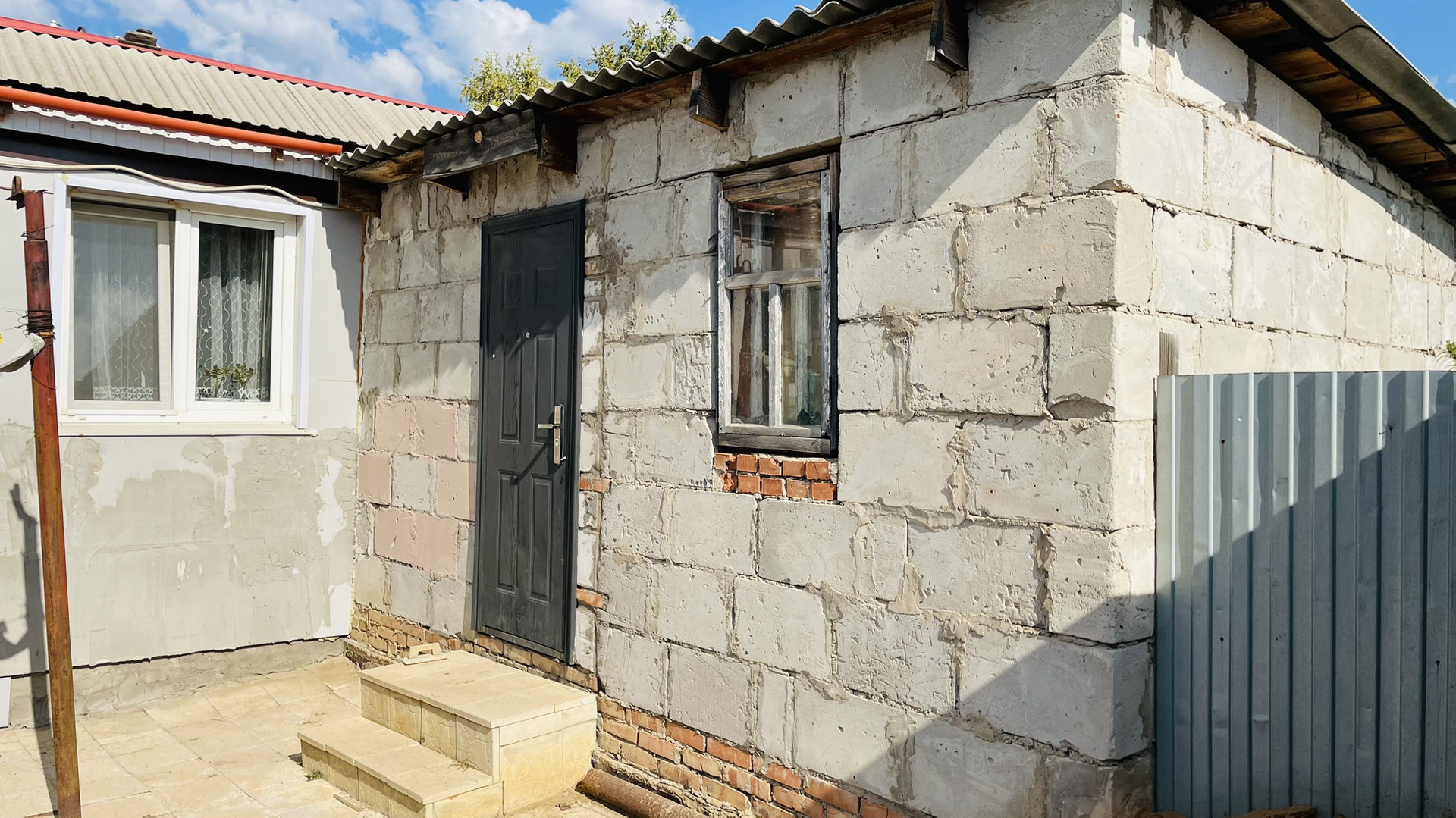 На участке, сарай с погребом.просторный гараж , навес можно загнать еще одно авто , на территории плитка по фото видно , возле дома щебенка .