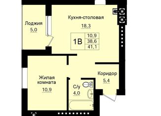 Общая площадь: 38.6 м2