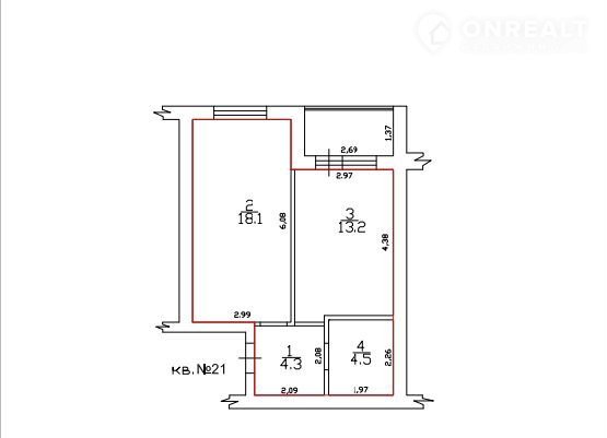 Общая площадь 42 м2