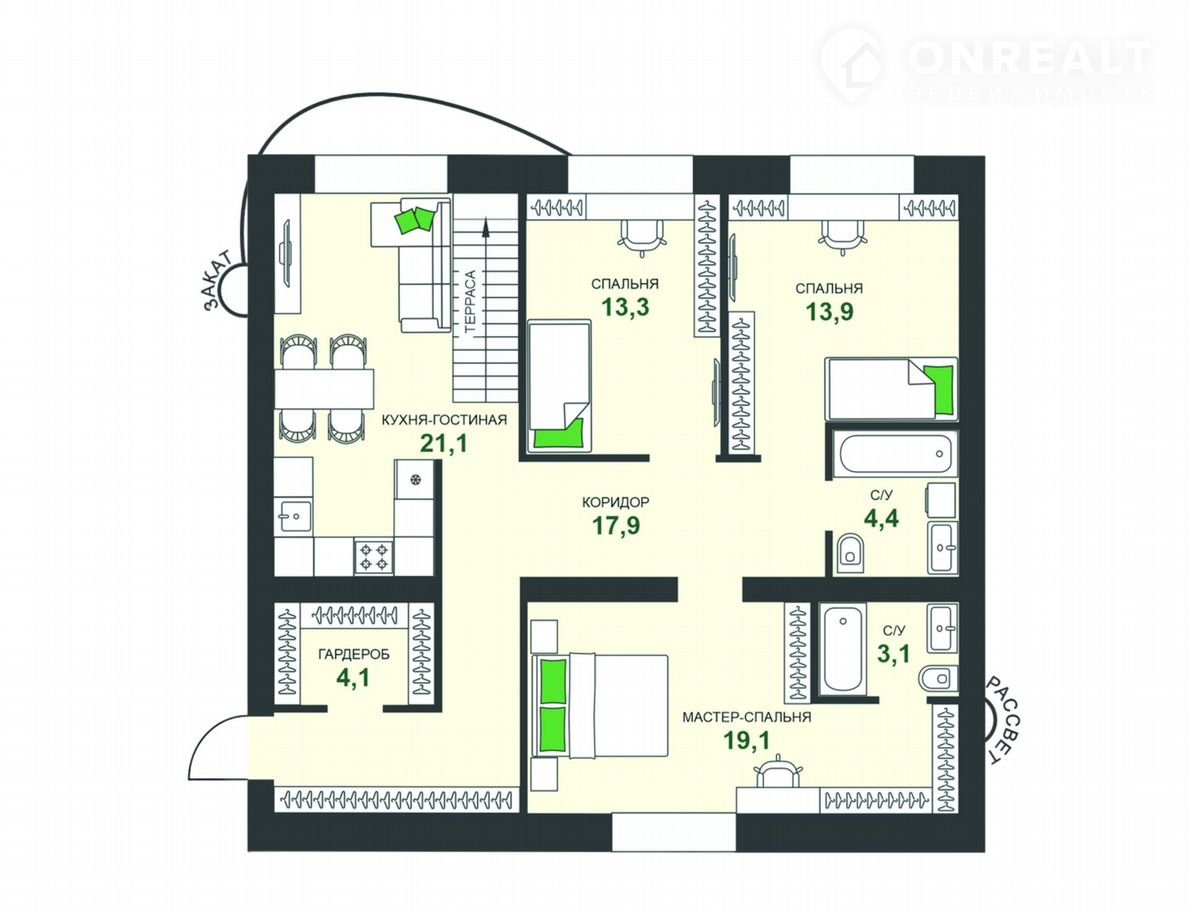 Общая площадь 96.8 м2