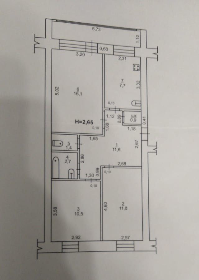 Высота потолков 2.65 м