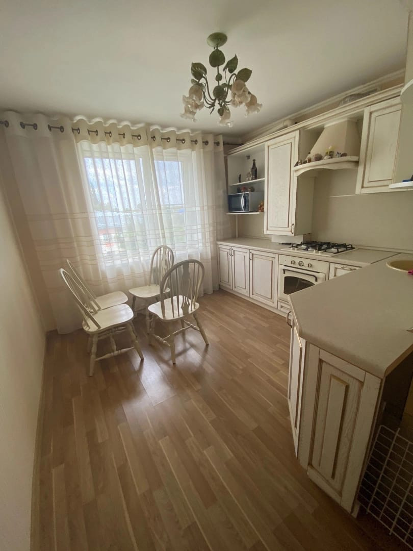 Продажа трехкомнатной квартиры на 3 этаже трехэтажного дома улучшенной планировки. Площадь квартиры 65.5 кв.м., кухня -11 кв.м.. Лоджия застеклена,  санузел совмещен. Квартира с евроремонтом со встроенной техникой и кухонным гарнитуром. Пластиковые она, неугловая. Везде качественные обои. Частично остается мебель. В квартире автономное отопление Спокойные соседи, подъезд чистый. Во воре находится шлагбаум. В шаговой доступности вся инфраструктура